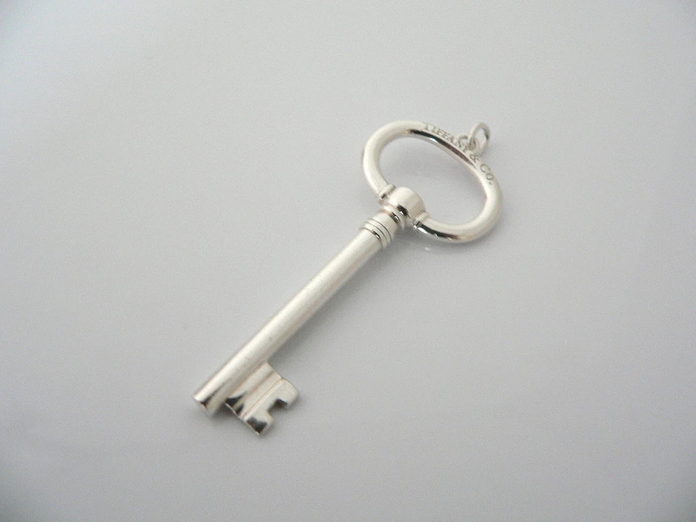 Overview: Offered for sale is a wonderful and very pretty Tiffany classic. Whether you are just starting your Tiffany collection or are thinking of adding another piece, this one is perfect for you. Tiffany & Co.'s Sterling Silver Large Oval Key pendant is a Tiffany classic that will never go out of style. It will most certainly be a piece that you will turn to over and over again, so it is great value for your money! Just add the Key charm to an existing chain that you already own, and voila! Instant Tiffany style! :) It is simple, elegant, and classic. Imagine the piece with your professional office attire ... Now imagine it with jeans or weekend wear ... Perfect! It is in excellent condition! As always, the item is fully hallmarked and guaranteed to be 100% authentic. Wonderful present for yourself or anyone you love! Will surely delight! Particulars: Size & Measurements: The key pendant is 2.5 inches (including bail). Metal & Hallmarks: Tiffany & Co. / 925 Solid 925 sterling silver Please check out my other unique and interesting Tiffany items on sale.