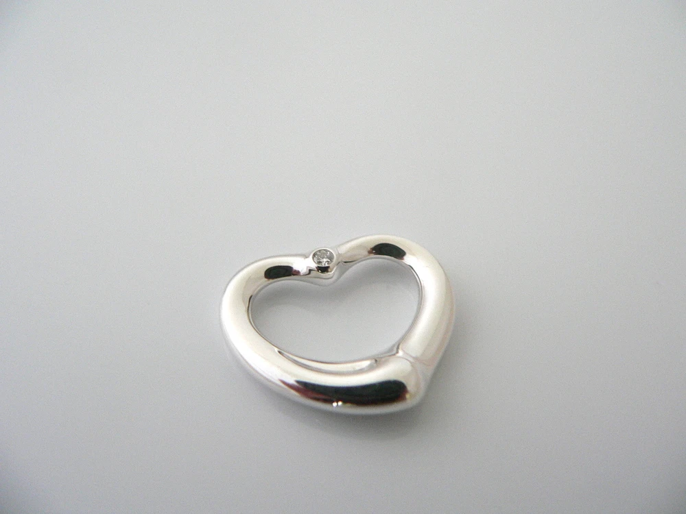 Overview: Offered for sale is a wonderful Tiffany classic. Whether you are just starting your Tiffany collection or are thinking of adding another piece, this one is perfect for you. This very cool and super rare Tiffany & Co. Silver Peretti Diamond Open Heart Charm is a Tiffany classic that will never go out of style. The piece makes a "Tiffany" statement in its own subtle/simple way. Just attach the charm to an existing necklace / charm bracelet / key ring and voila! Instant Tiffany style! It will most certainly be a piece that you will turn to over and over again, making it great value for your money. It is a wonderful charm that fits a lifestyle on the go -- the piece can be worn to almost any occasion! It is simple, elegant, and classic all rolled into one. Imagine the piece with your professional office attire ... Now imagine it with jeans or weekend wear ... Very cool in every way! The item is very comfortable to wear, and is in excellent condition. As always, the item is fully hallmarked and guaranteed to be 100% authentic. Wonderful present for yourself or anyone you love! Will surely delight! Particulars: The Heart charm is approx. 0.9 inches at its widest ends. Metal & Hallmarks: Tiffany & Co. / Peretti / 925 / Spain Solid 925 sterling silver and a super Sparkly Diamond Please check out my other unique and interesting Tiffany items on sale. Note to International buyers: Now shipping to selected countries outside the US. Please let me know if you are interested in one of my items.