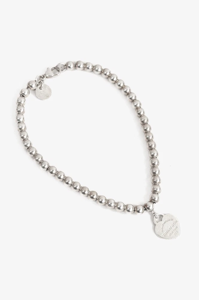 Inspired by the iconic key ring first introduced in 1969, this simple yet timeless bracelet from Tiffany & Co. is made in a polished sterling silver, and features a heart-shaped "Return to Tiffany" tag, a beaded bracelet, and is secured with a lobster clasp. Condition: Excellent; light signs of wear throughout. Comes with dustbag. Approximate Measurements: Circumference: 6.5" (16.5 cm) Composition: Sterling silver.