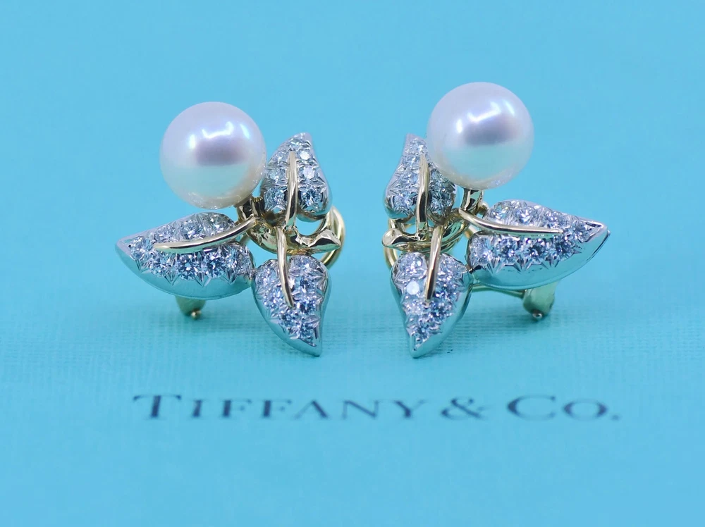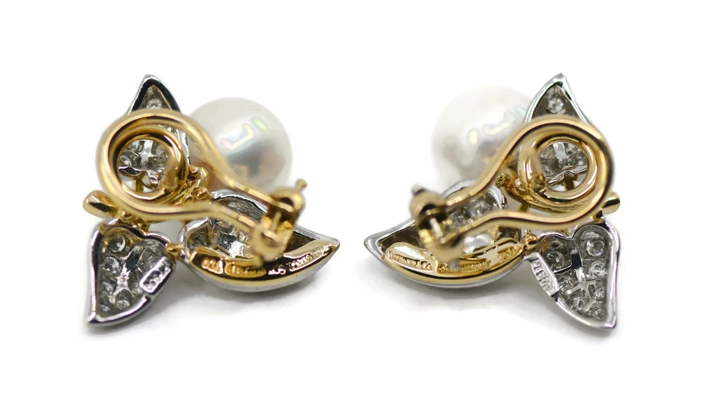 TIFFANY & CO SCHLUMBERGER DIAMOND PEARL 18K YELLOW GOLD EARRINGS SIZE:18MM WEIGHT:15.5 GRAMS SKU:12-24/7 100% AUTHENTIC WITH POUCH