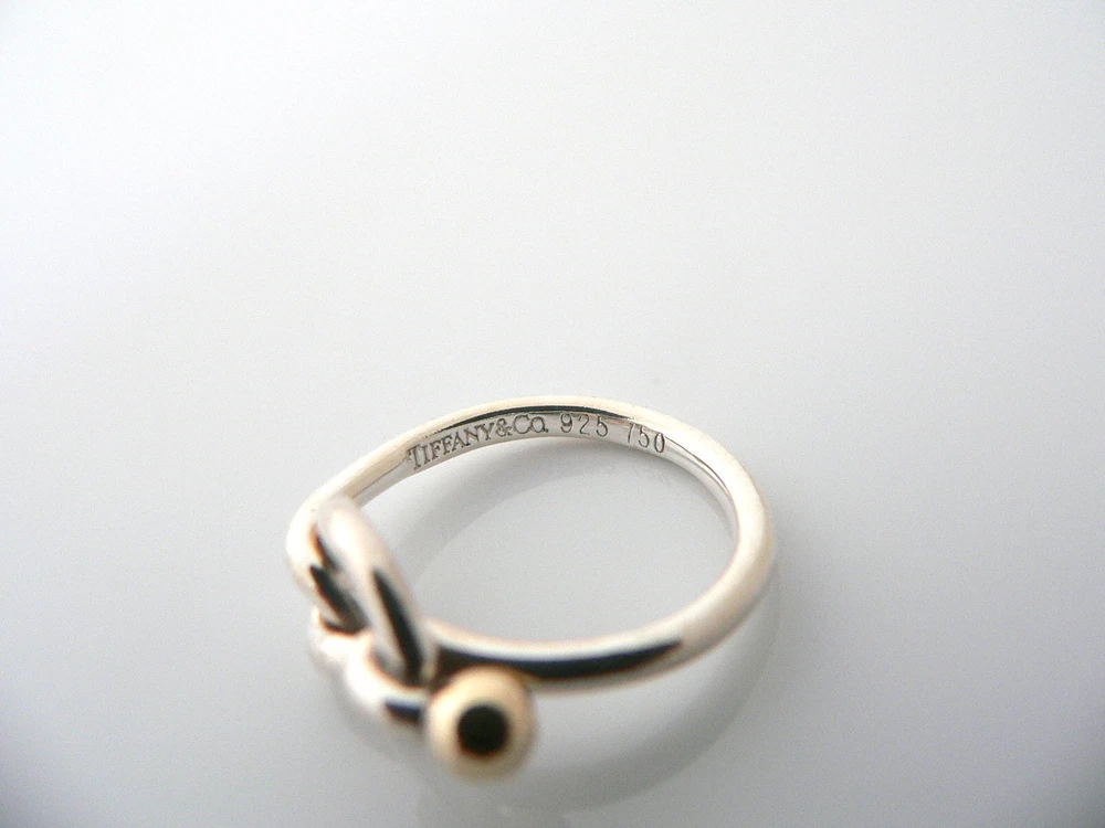 Overview: Offered for sale is a wonderful Tiffany and Co. Silver and 18K Gold Love Knot / Hook Ring. The piece is made from solid Tiffany silver and 18K gold, allowing you to combine the ring with almost any other piece of jewelry you already own. The style is classic Tiffany, making it a piece that you will most certainly use over and over again. It is very comfortable to wear, and is in very good condition. Great piece to wear to work, or for just going to dinner with friends in jeans or a pretty dress. A great Tiffany piece to start or add to your collection. The item is fully hallmarked and is guaranteed to be 100% authentic. Wonderful present for yourself or anyone you love! Will surely delight! Particulars: Size & Measurements: The ring is a size 5.75 Metal & Hallmarks: Tiffany & Co. / 925 / 750 Solid 925 sterling silver and 18K gold Please check out my other unique and interesting Tiffany items on sale.