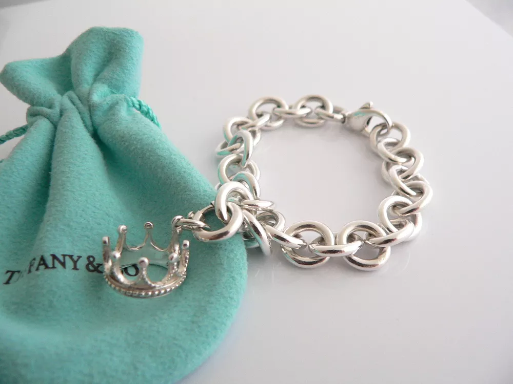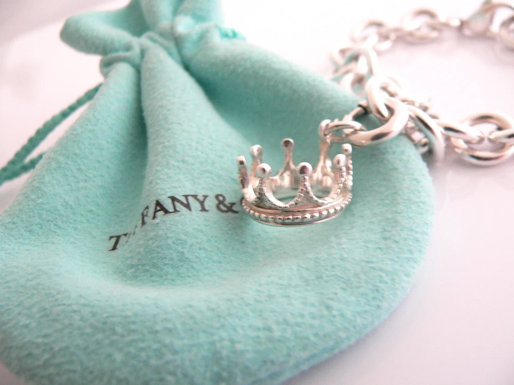 Offered for sale is a wonderful Tiffany and Co. Sterling Silver Crown Charm bracelet. The piece is made from substantial and bright Tiffany silver, and yet retains a very feminine feel to it. Attached to its very substantial Tiffany Silver charm bracelet is a fantastic and whimsical Crown charm. The charm is attached to the bracelet with a Sterling Silver Tiffany Clasp - this clasp opens and closes and thus can be used as a charm on a necklace or as part of another charm bracelet! Super versatile piece! It is a classic Tiffany piece that will most certainly be a piece that you will be used over and over again, so it is great value for the money! It is a wonderful piece that fits a lifestyle on the go -- the bracelet can be worn to almost any occasion! It is versatile, elegant, and classic all rolled into one. Imagine the piece with your professional office attire ... Now imagine it with jeans or weekend wear ... Perfect! The bracelet is in excellent condition. As always, both the charm bracelet and padlock charm are fully hallmarked and guaranteed to be 100% authentic. Wonderful present for yourself or anyone you love! Will surely delight! It will come with its Tiffany pouch as shown! Perfect and ready for gifting! Particulars: Size & Measurements: The bracelet is approx. 8.2 inches from end to end. Metal & Hallmarks: T & Co. / 925 (middle link of chain; and clasp of charm) T & Co / 925 (on Crown charm) Solid 925 sterling silver Please check out my other unique and interesting Tiffany items on sale.