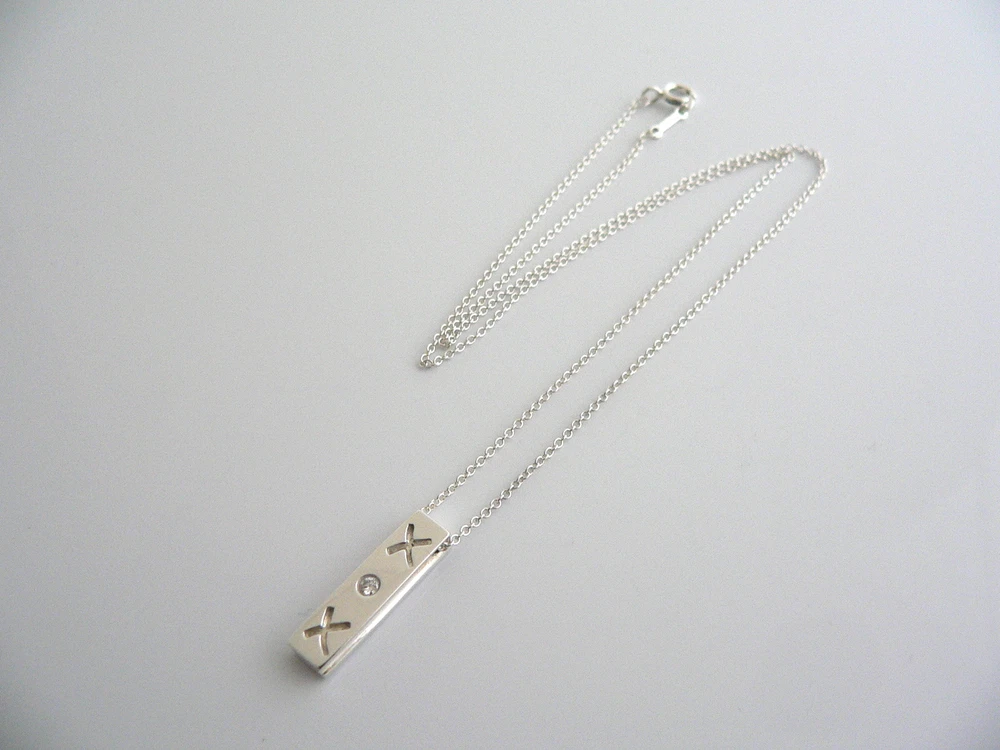 Guys, listen up! Show her your love without saying a word ... believe me, she will know with this awesome piece! :) Offered for sale is a gorgeous Tiffany & Co. Paloma Picasso Sterling Silver Hugs & Kisses Diamond necklace. The necklace is a wonderful piece that is simple, elegant, and classic all rolled into one. It works perfectly with pretty much any attire your put on, AND adds a nice feminine touch to it. Hanging from its bright Tiffany silver curb chain is a bar pendant that has two "X"s (i.e., kisses) and a gorgeous diamond center (i.e.; "hug" :)) that sparkles nicely as it catches the light! It is a wonderful necklace that fits a lifestyle on the go -- the necklace can be worn to pretty much any occasion! Imagine the piece with your professional office attire ... Now imagine it with jeans or weekend wear ... Perfect! The item is very comfortable to wear, and is in very good condition. It is a perfect Tiffany piece to start or add to your collection. As always, the item is hallmarked and guaranteed to be 100% authentic. Wonderful present for yourself or anyone you love! Will surely delight! Particulars: Size & Measurements: The chain is approx. 16.5 inches from end to end. The bar pendant is 0.75 inches long. Metal & Hallmarks: T & Co. / Paloma Picasso / 925 (on chain clasp) Tiffany & Co. / Paloma Picasso / 925 (back of pendant) Solid 925 sterling silver Please check out my other unique and interesting Tiffany items on sale.