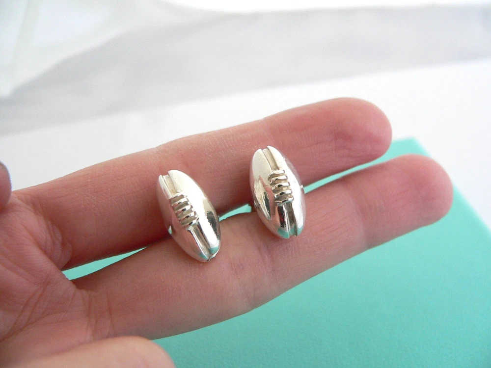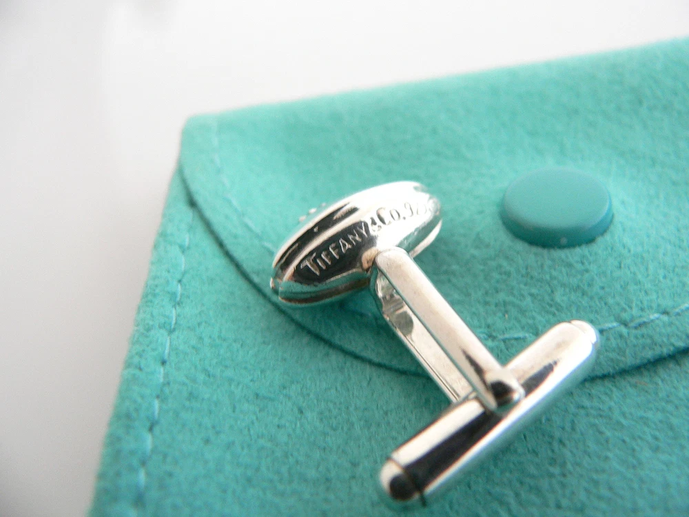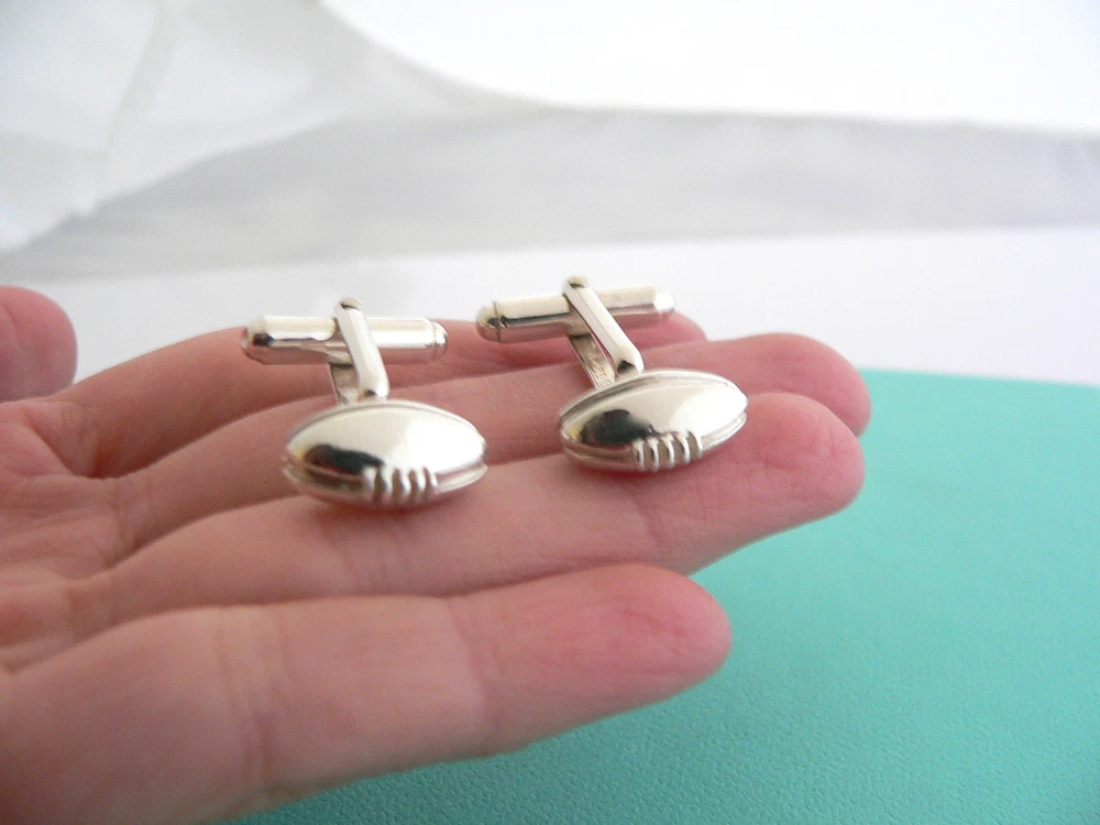 Offered for sale is a rare and unique pair of Tiffany and Co. Sterling Silver Football Cuff Links. Perfect for the football player / lover / aficionado! The detailing of the piece is just amazing. It will certainly be something that will be used on a daily basis. Just a little something to put a smile on your face when you look down on your sleeve! :) It is no longer in production, making it a great piece for the collector. Perfect surprise for that someone special! The piece is fully hallmarked and is guaranteed to be 100% authentic. Wonderful present for yourself or anyone you love! Will surely delight! Particulars: Weight: 13.4 grams Metal & Hallmarks: Tiffany & Co. / 925 Solid 925 sterling silver Please check out my other unique and interesting Tiffany items on sale.