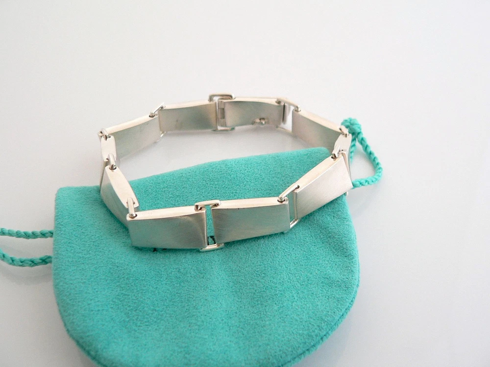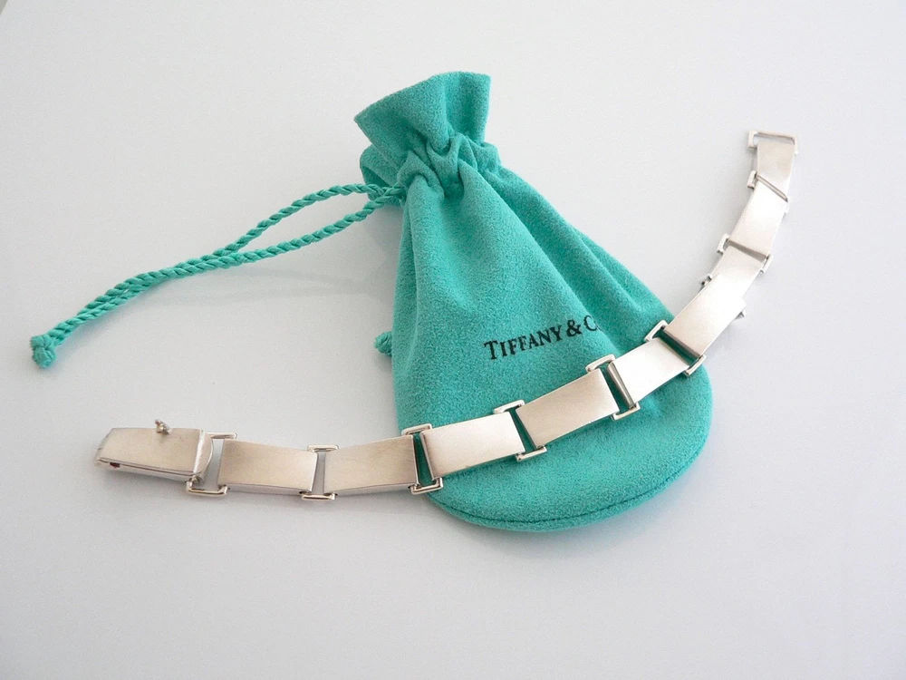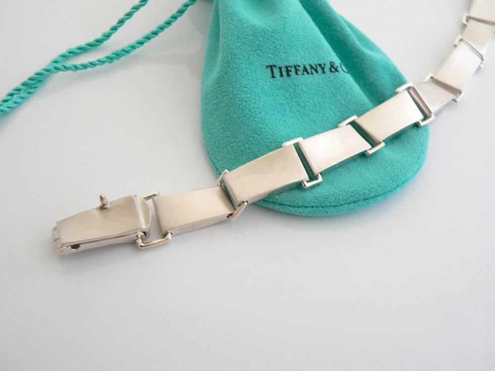 Overview: Everyone needs a signature Tiffany piece! Here is the perfect one just for you - and it's a very rare and yet super fabulous piece! Offered for sale is a wonderful Tiffany & Co. Sterling Silver Gehry Torque Link Bracelet. The piece is crafted from gorgeous Tiffany & Co. Matte silver, and looks super elegant and chic / cosmopolitan! Beautiful, bold, and just awesome Tiffany! It is just like wearing a piece of art on your wrist - without the super high price :) It is a wonderful cuff that fits a lifestyle on the go, and can be worn to almost any occasion! The piece is simple, elegant, and classic all rolled into one. Imagine it with your professional office attire ... Now imagine it with jeans or weekend wear ... Perfect! The bracelet is very comfortable to wear, and is in excellent condition. It is one of THE classic Tiffany piece to start or add to your collection. The bracelet is no longer in production, and you will be one of the few to own this piece - so grab it while you can! As always, the item is fully hallmarked and guaranteed to be 100% authentic. Wonderful present for yourself or anyone you love! Will surely delight! It will come with its Tiffany pouch as shown - perfect and ready for gifting! Particulars: Size & Measurements: The bracelet is approx. 8.5 inches long. Metal & Hallmarks: T & Co. / Gehry / 925 Solid 925 sterling silver Please check out my other unique and interesting Tiffany items on sale.