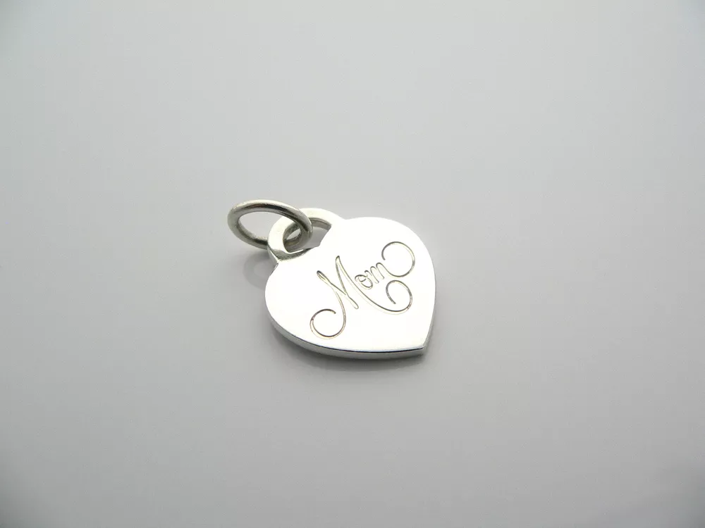 Looking for that special surprise for Mom? Here it is! Perfect charm and keepsake to add on to any bracelet or necklace that she already has. Here's a super versatile Tiffany & Co. Sterling Silver "Mom" Heart charm that is perfect for any necklace or bracelet that you already own! The piece is perfect worn alone or as part of a charm collection. It is just like wearing a piece of art right on your neck / wrist - without the super high price! :) It is very pretty worn on its own, but would also work very well with other pieces of jewelry that you already own. Great piece to wear to work, or for just going to dinner with friends in jeans or a pretty dress. The charm is definitely classic Tiffany. It is a wonderful Tiffany piece to start or add to your collection. As always, the item is hallmarked and guaranteed to be 100% authentic. Particulars: Metal & Hallmarks: Tiffany & Co. / 925 (on charm) Solid 925 sterling silver Please check out my other unique and interesting Tiffany items on sale.