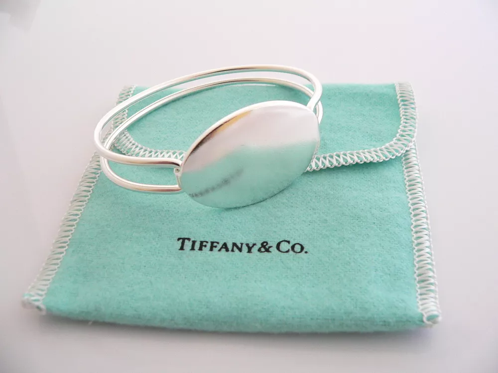 Overview: Offered for sale is a gorgeous and wonderful Tiffany and Co. Silver Oval ID Tag Double Wire Bangle / Bracelet. This piece is made from solid Tiffany silver, and yet has a very dainty and feminine touch to it. Very elegant, versatile, and comfortable piece! Great piece to wear to work, or for just going to dinner with friends in jeans or a pretty dress. The style is classic Tiffany, making it a piece that you will most certainly use over and over again. The ID section is currently unengraved on its front and back, and is ready to be personalized - should you choose to do so. A great Tiffany piece to start or add to your collection. No longer in production, it is perfect for the collector. The piece is fully hallmarked and is guaranteed to be 100% authentic. It will come with its Tiffany pouch as shown! Perfect and ready for gifting! Wonderful present for yourself or anyone you love! Will surely delight! Particulars: Size & Measurements: The bracelet is 2.3 inches at its widest ends. Metal & Hallmarks: Tiffany & Co. / 925 Solid 925 sterling silver Please check out my other unique and interesting Tiffany items on sale.