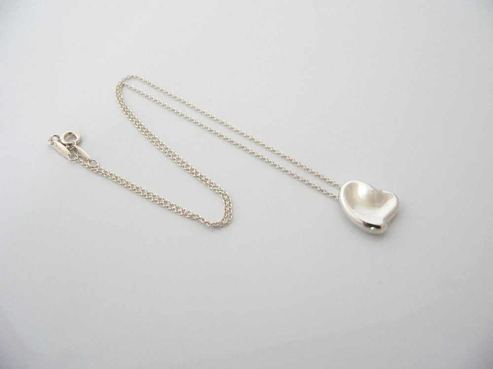 Time to show off your awesome Tiffany necklace! Offered for sale is a classic and very pretty Tiffany and Co. Peretti Medium Full Heart Necklace. Wonderful necklace that fits a lifestyle on the go -- the necklace can be worn to almost any occasion! Hanging from its beautiful Tiffany & Co. silver curb chain is a super pretty Peretti Medium Full Heart charm. It is simple and yet looks extremely elegant. Imagine the piece with your professional office attire ... Now imagine it with jeans or weekend wear ... Perfect in every way! The item is very comfortable to wear, and is in excellent condition. A classic Tiffany piece to start or add to your collection. Both the pendant and chain are fully hallmarked and guaranteed to be 100% authentic. Wonderful present for yourself or anyone you love! Will surely delight! Particulars: Size & Measurements: The necklace is 16.1 inches from end to end. The Medium Full Heart charm is approx. 0.6 inches at its widest ends. Metal and Hallmarks: Tiffany & Co. / Elsa Peretti / 925 / Spain Solid 925 Sterling Silver Please check out my other unique and interesting Tiffany items on sale.