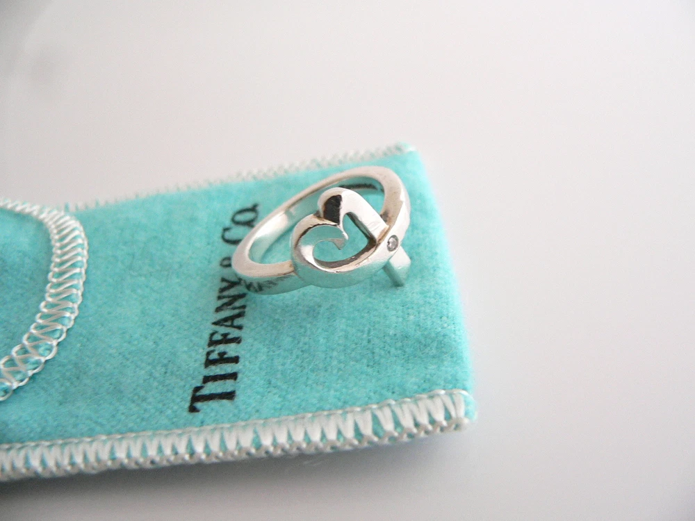 Overview: Guys, listen up! Now you can show your love without ever saying a word! Believe me, she will know! :) Offered for sale is a very pretty Tiffany and Co. Paloma Picasso sterling silver and Diamond Loving Heart ring. Looks very feminine and pretty on the fingers, this ring is surely one that you will use over and over again. It is very versatile, comfortable to wear, and super pretty! Easily sizable due to the way it is made. Great piece to start or add to your Tiffany collection. The ring is fully hallmarked and is guaranteed to be 100% authentic. It will come with its Tiffany pouch as shown! Perfect and ready for gifting! Wonderful present for yourself or anyone you love! Will surely delight! Particulars: Size & Measurements: The ring is a size 6.75 Metal & Hallmarks: Tiffany & Co. / Paloma Picasso / 925 Solid 925 sterling silver and a bright sparkly diamond Please check out my other unique and interesting Tiffany items on sale.