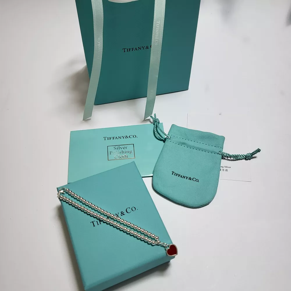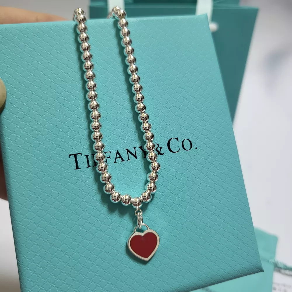 Tiffany & Co. Silver Red Heart Ball Chain Bracelet With Box