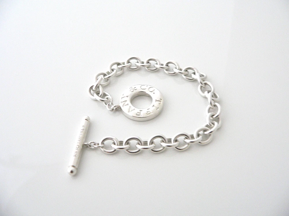 Offered for sale is a wonderful and gorgeous Tiffany & Co. Sterling Silver Toggle bracelet. Definitely a Tiffany piece that you will get your money's value for. It works perfectly with pretty much any attire your put on, AND is an awesome statement piece. Looks great worn alone, stacked with other bracelets, or you can add your own charms to personalize the piece! Classic Tiffany statement piece! It is the perfect necklace that fits a lifestyle on the go -- the piece can be worn to pretty much any occasion! It is simple, elegant, and classic all rolled into one. Imagine wearing the bracelet with your office attire... now imagine it with jeans or weekend wear ... Perfect anytime! It is a perfect Tiffany piece to start or add to your collection. As always, the item is hallmarked and is guaranteed to be 100% authentic. Wonderful present for yourself or anyone you love! Will surely delight! Particulars: Size & Measurements: The bracelet is approx. 7.5 inches. Metal & Hallmarks: Tiffany & Co. / 925 Solid 925 Sterling Silver Please check out my other unique and interesting Tiffany items on sale.