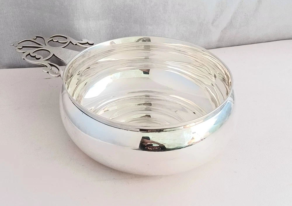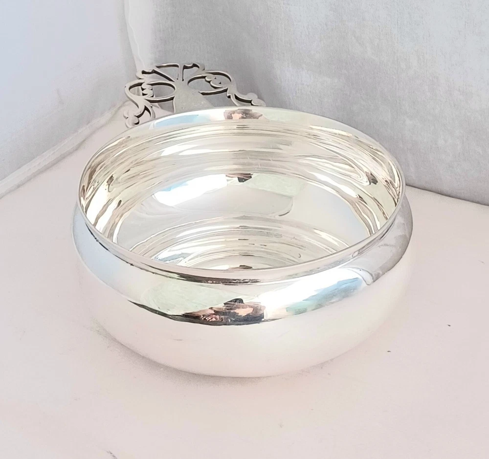 This Tiffany & Co Sterling MMA Reproduction Large Porringer is in excellent condition. No dents or damage. This piece measures 2" tall 4 1/2" diameter without including the handle, and weighs 8 troy oz. This Piece is NOT monogrammed. This piece is marked with the Tiffany and Co Sterling marks, and Museum of Modern Art Clearwater Collection marks, as pictured. This exquisite porringer from Tiffany & Co. is a stunning piece of sterling silver (.925) porringer. The porringer features the iconic Tiffany & Co. branding, adding a touch of luxury to any setting. Crafted with the utmost care and attention to detail, this porringer is a true masterpiece. Its sterling silver (.925) composition ensures its durability and longevity, while its elegant design and intricate details make it a truly special addition to any collection. Whether you're a collector of antique silver pieces or simply looking for a unique and beautiful porringer, this Tiffany & Co. piece is sure to impress.