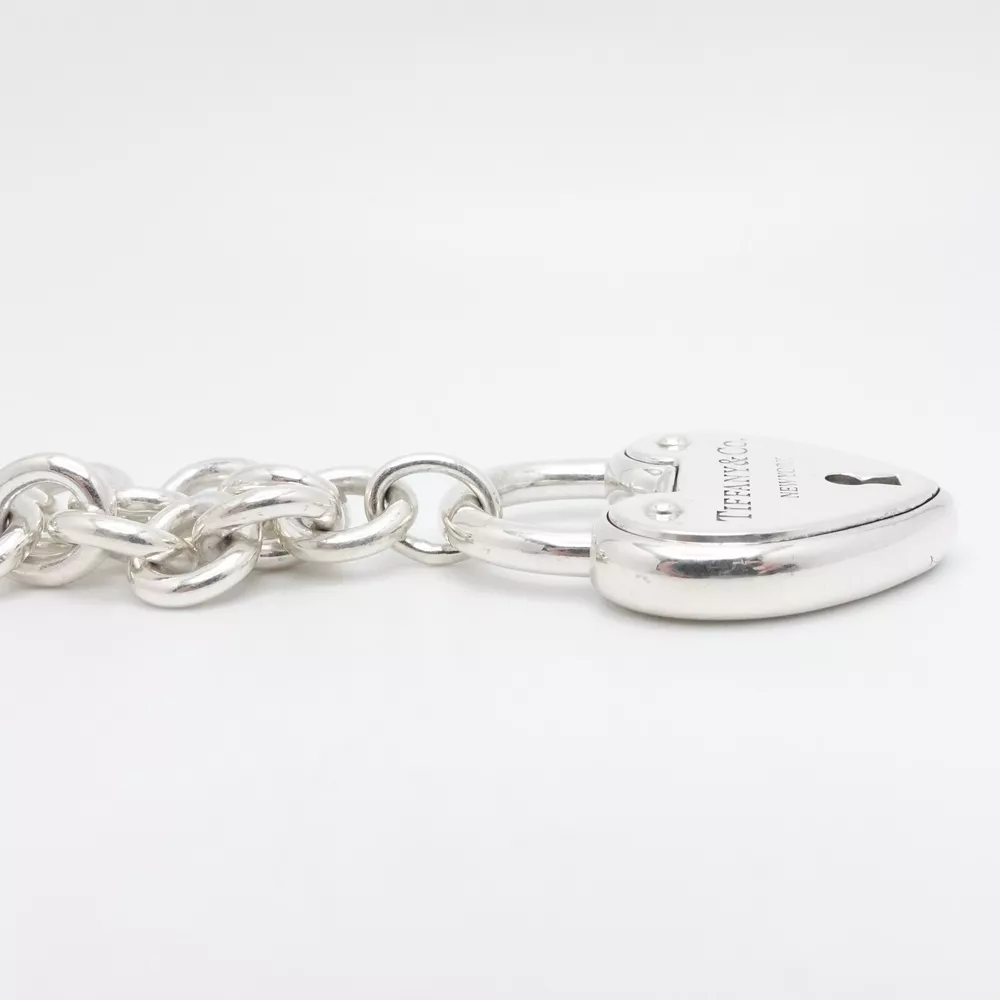 Welcome to my e B a y Store Tiffany & Co. Sterling Silver Large Heart Padlock Chain Bracelet Size - 9" Long Fits up to Relax 8" - 8.25" Snug Fit Chain Width - 8mm Charm Height - 1.33" Charm Width - 1" approx. Charm Depth - 5.5mm Thick Total Weight - 44.7 Grams Hallmark - T&Co. .925 **Padlock doe not open** Very Great & Professionally Polished Pouch Included Bid With Confidence Feel Free to ask any questions before bidding please If you would like additional pictures please send me a message Check out my other listings for more great deals! 100% Authentic or your Money Back Guarantee!! Free Shipping on All Items!