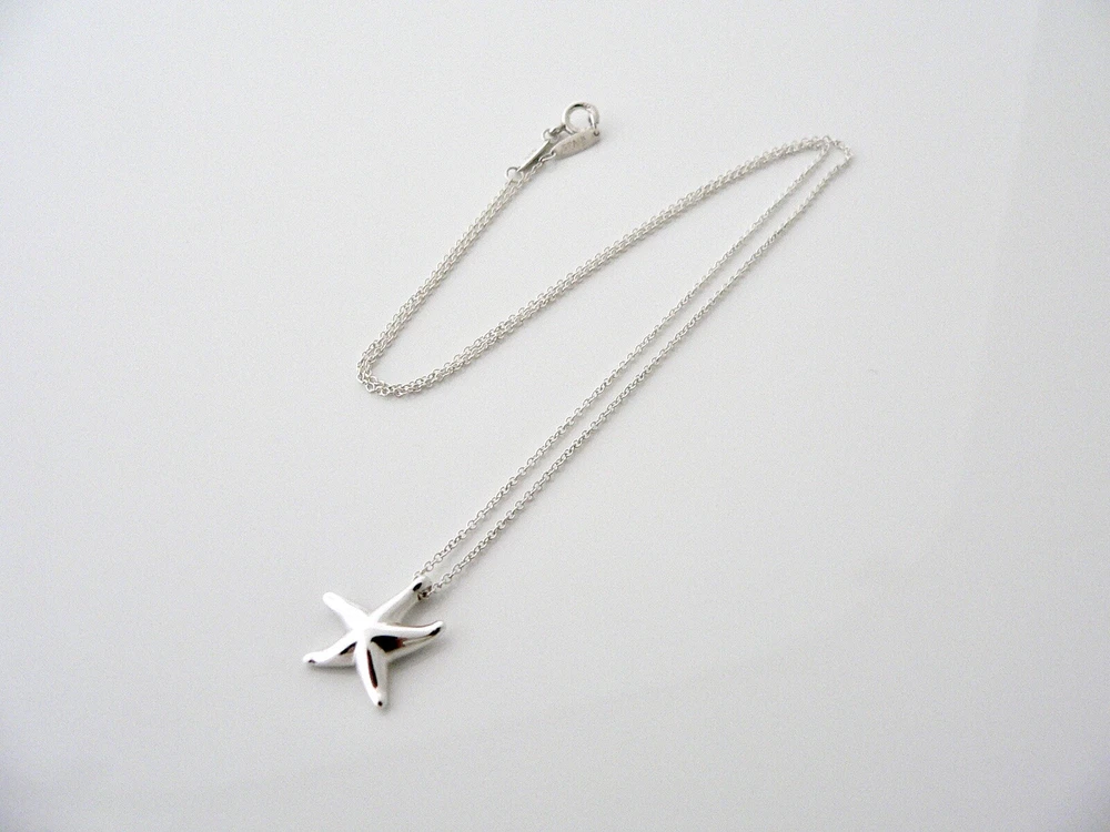 Overview: Offered for sale is a wonderful Tiffany classic. Whether you are just starting your Tiffany collection or are thinking of adding another piece, this one is perfect for you. Elsa Peretti’s Starfish necklace is a Tiffany classic that will never go out of style. It will most certainly be a piece that you will turn to over and over again, so it is great value for your money! It is a wonderful necklace that fits a lifestyle on the go -- the necklace can be worn to almost any occasion! It is simple, elegant, and classic all rolled into one necklace. Imagine the piece with your professional office attire ... Now imagine it with jeans or weekend wear ... Perfect! The item is very comfortable to wear, and is in excellent condition. As always, the item is fully hallmarked and guaranteed to be 100% authentic. Wonderful present for yourself or anyone you love! Will surely delight! Particulars: Size & Measurements: The chain is 16.5 inches from end to end. Metal & Hallmarks: Tiffany & Co. / 925 / Elsa Peretti / Spain Solid 925 sterling silver Please check out my other unique and interesting Tiffany items on sale.