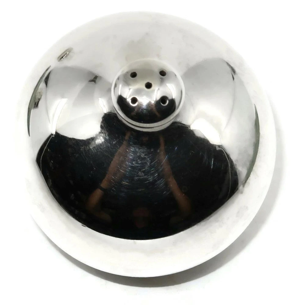 You have found the missing pieces to your silverware collection! Here is a pair sterling silver salt & pepper shakers from Tiffany & Company. The pattern features a ball shape with different hole sizes for each item. It has no monogram, and the total weight is 81 grams. Both have storage bags that are worn. They are 1 3/4" across by 1 7/8" tall and are in very good preowned condition based on fine scratches and wear from use. Please see our Not Just China store for more silverware & collectibles. We try to ship within 24 hours of receiving payment. If you have questions or you feel there is a problem, please e-mail us. We will normally get back to you within 24 hours. Thanks for looking at our store! Most of our items are sold as collectibles. We find them at Central Florida antique shows, auctions and estate sales. Antique or vintage items may, by nature have flaws and imperfections due to age. While we are not experts on this merchandise, we do our best to describe them as accurately as possible through pictures and descriptions. We do this as a hobby and strive to make our customers happy. If you are dissatisfied in any way with your purchase, please contact us Tiffany & Company, Sterling Silver, Ball Shape Salt & Pepper Shakers, 1 3/4" Bag Tiffany & Company, Sterling Silver, Ball Shape Salt & Pepper Shakers, 1 3/4" Bag Click images to enlarge Description You have found the missing pieces to your silverware collection! Here is a pair sterling silver salt & pepper shakers from Tiffany & Company. The pattern features a ball shape with different hole sizes for each item. It has no monogram, and the total weight is 81 grams. Both have storage bags that are worn. They are 1 3/4" across by 1 7/8" tall and are in very good preowned condition based on fine scratches and wear from use. Please see our Not Just China store for more silverware & collectibles. We try to ship within 24 hours of receiving payment. If you have questions or you feel there is a problem, please e-mail us. We will normally get back to you within 24 hours. Thanks for looking at our store! Most of our items are sold as collectibles. We find them at Central Florida antique shows, auctions and estate sales. Antique or vintage items may, by nature have flaws and imperfections due to age. While we are not experts on this merchandise, we do our best to describe them as accurately as possible through pictures and descriptions. We do this as a hobby and strive to make our customers happy. If you are dissatisfied in any way with your purchase, please contact us Pictures sell! Auctiva offers Free Image Hosting and Editing. 300+ Listing Templates! Auctiva gets you noticed! The complete eBay Selling Solution. Track Page Views With Auctiva's Counter