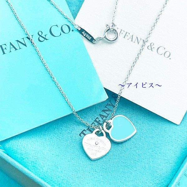 Tiffany Double Heart Necklace with Blue Diamonds - Brand New & Gift Wrapped