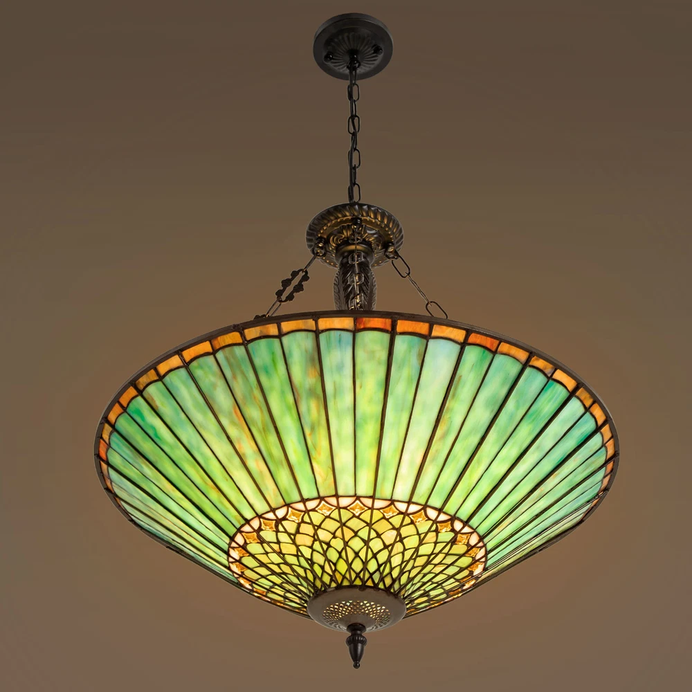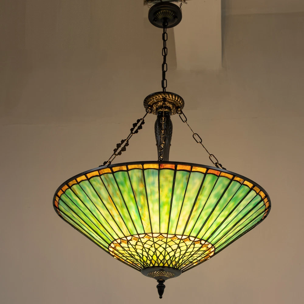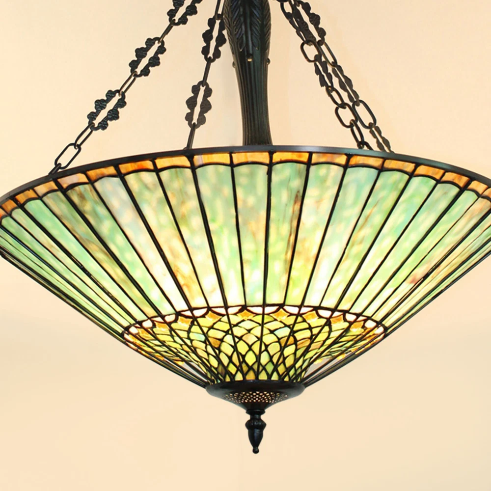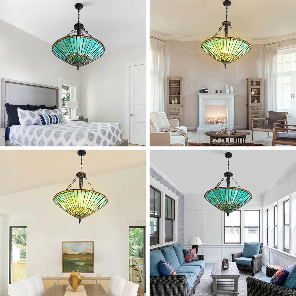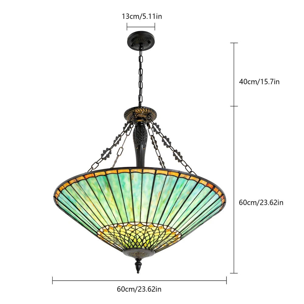 Specifications Style: Tiffany Color: Emerald Green (Light Off) Material: Stained Glass, Zinc Alloy Process: Stoving Varnish, Cutting, Polishing, Tin-soldering, Coating Technology Control Method: Reserved Wall Switch Mounting Type: Ceiling Mounted Light Fixture Form: Ceiling Power Source: Corded Electric Voltage: 110V Efficiency: E Light Source: 5*E26 Bulbs(Not Included) Bulb Types: Energy-saving Bulb, Incandescent Bulb, LED Max. Single Bulb Power: 80W Illumination Area: 15-20m²/ 161.45-215.27ft² Suitable Floor Height: 2.8-3.5m/9.18-11.48ft Adjustable Height: 50-100cm/19.68-39.37inch Chain Length: About 40cm/15.7inch Product Overall Height: 100cm/39.37inch Shade Diameter: 60cm/23.62 inch Base Diameter: 13cm/5.11inch Package Included 1* Pendant Light 1* English Manual Tiffany Stained Glass Ceiling Light Living Room Pendant Lamp Height Adjustable Description The Tiffany style pendant light with its gorgeous colors and classic conic shape is not only an excellent tool to light up your room but also embellish your room with unique and beautiful elements. With exquisite workmanship and durable stained glass, it is not easy to fade. You can install 5 E26 bulbs yourself such as incandescent and LED bulbs to create different lighting atmospheres and express your unique taste. Key Features Eye-Catching Tiffany Style: The umbrella-like shape light embellished with a special stained glass lampshade makes it appear distinct individuality and adds a sense of retro feelings to the modern environment. It appears natural emerald green color when the lights are off and presents different visual feelings under different lighting conditions. Long Service Life: Made of premium stained glass and zinc alloy with delicate cutting, polishing, splicing, high-temperature soldering, stoving varnish, and anti-rust oil coating processes, this pendant light is resistant to rust, wear, fade, corrosion, and deformation, so you can use it with confidence. Adjustable Height: You can adjust the overall height of this light from 19.68-39.37" by shortening or removing the hanging chain, thus creating different lighting effects and decorative appearance. Safety Guaranteed: The ground wire with over-temperature and overcurrent protections and the light bulb connection parts made of insulating bakelite improve the safety of use without worrying about electric shock. Easy to Clean: The smooth surface after stoving varnish and coating technologies makes it easy to clean by gently and smoothly wiping with a cloth. Ideal Gift: This product is stylish and high-quality and can be used as a housewarming, birthday, or holiday gift for parents, friends, and loved ones. Protective Package: To prevent the product from being damaged during transportation, we packed it with foamed plastic to protect your products to the maximum extent possible. Buy with Confidence: We are honored that you have chosen our product. We have sufficient confidence in the quality of the product so that you can buy it confidently. But if you have any questions, you can contact our customer service, he will patiently answer and solve your problems. Details Standard E26 Lamp Holder: 5 E26 holders can be adapted to various models of bulbs such as LED, incandescent, and energy-saving bulbs to create different lighting effects. You simply screw the bulbs off and change a new one on. Sturdy Chains&Base: The four sturdy chains firmly connect the lampshade to the lamp body, together with the thickened base of 5.11" in diameter, ensuring high stability and making you use this light with peace of mind. Application Its applicable area is about 161.45-215.27ft² and its applicable height is about 9.18-11.48ft. It is suitable for dining rooms, kitchens, living rooms, entryways, stairways, clothing stores, coffee shops, bars, bedrooms, studies, etc. Specifications Style: Tiffany Color: Emerald Green (Light Off) Material: Stained Glass, Zinc Alloy Process: Stoving Varnish, Cutting, Polishing, Tin-soldering, Coating Technology Control Method: Reserved Wall Switch Mounting Type: Ceiling Mounted Light Fixture Form: Ceiling Power Source: Corded Electric Voltage: 110V Efficiency: E Light Source: 5*E26 Bulbs(Not Included) Bulb Types: Energy-saving Bulb, Incandescent Bulb, LED Max. Single Bulb Power: 80W Illumination Area: 15-20m²/ 161.45-215.27ft² Suitable Floor Height: 2.8-3.5m/9.18-11.48ft Adjustable Height: 50-100cm/19.68-39.37inch Chain Length: About 40cm/15.7inch Product Overall Height: 100cm/39.37inch Shade Diameter: 60cm/23.62 inch Base Diameter: 13cm/5.11inch Package Included 1* Pendant Light 1* English Manual Notes You need 5 E26 bulbs with a single bulb less than 80W (not included), and please make sure the power is cut off before installation. To ensure your safety, we recommend that two people install this ceiling light together. Please install it by someone with an electrical license if necessary. Please check the product size before ordering to make sure it fits your room. It is suitable for flat ceilings but not arched or sloped ceilings. The product needs the reserved switch on the wall to control the light. If you need to adjust the brightness of the light, please install the dimmer switch on your own. The sound may be like plastic when you knock on the lampshade, but it is the feature of the Tiffany glass. If you still have doubts, the glass is fire-proof and scratch-resistant , you can put it on fire for a few minutes, or use a knife to cut it as tests. Please read the manual completely before use. Please allow the slight color difference caused by the shooting light and 1-3cm error due to manual measurement, and make sure you do not mind before you order. Payment Delivery details Terms of sales About us Contact us Payment We accept ebay payment 。 Fees such as import duties, taxes are not included in the item price or shipping costs. These charges are the buyer's responsibility. Delivery details Shipping: 2-9 working days to: USA Terms of sales We maintain hig