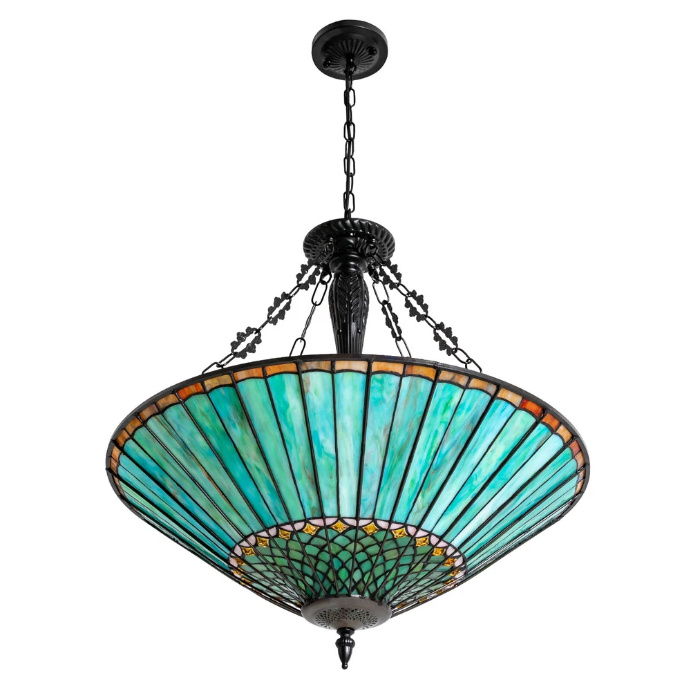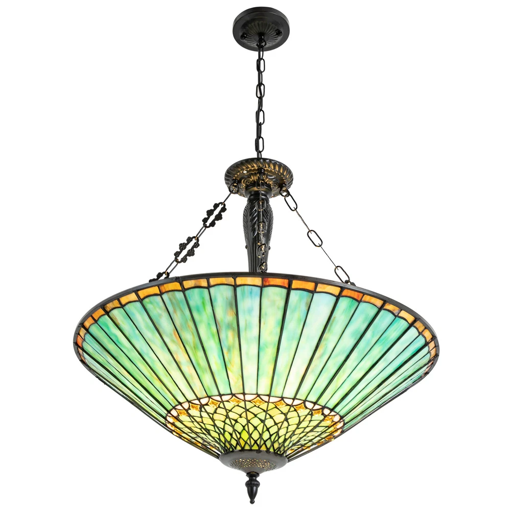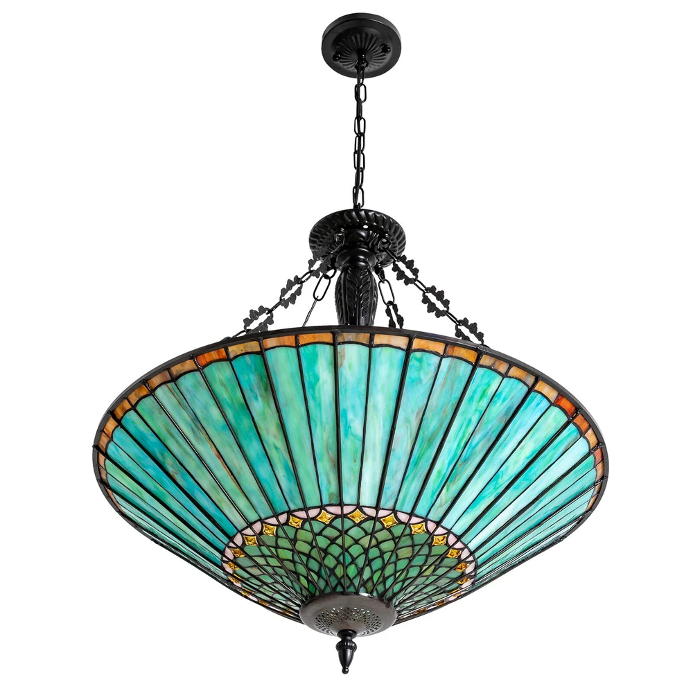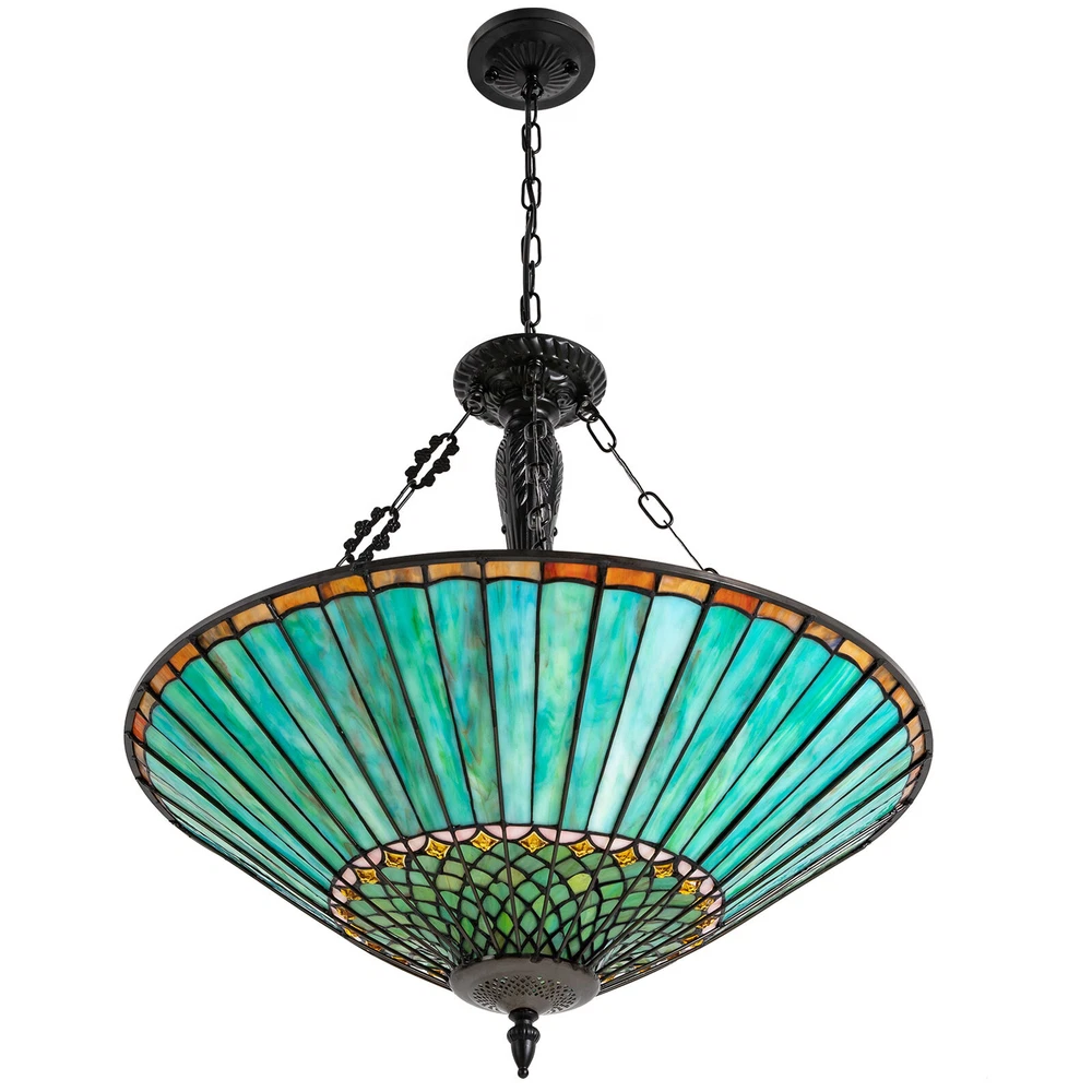 Specifications Style: Tiffany Color: Emerald Green (Light Off) Material: Stained Glass, Zinc Alloy Process: Stoving Varnish, Cutting, Polishing, Tin-soldering, Coating Technology Control Method: Reserved Wall Switch Mounting Type: Ceiling Mounted Light Fixture Form: Ceiling Power Source: Corded Electric Voltage: 110V Efficiency: E Light Source: 5*E26 Bulbs(Not Included) Bulb Types: Energy-saving Bulb, Incandescent Bulb, LED Max. Single Bulb Power: 80W Illumination Area: 15-20m²/ 161.45-215.27ft² Suitable Floor Height: 2.8-3.5m/9.18-11.48ft Adjustable Height: 50-100cm/19.68-39.37inch Chain Length: About 40cm/15.7inch Product Overall Height: 100cm/39.37inch Shade Diameter: 60cm/23.62 inch Base Diameter: 13cm/5.11inch Package Included 1* Pendant Light 1* English Manual Tiffany Stained Glass Ceiling Light Living Room Pendant Lamp Height Adjustable Description The Tiffany style pendant light with its gorgeous colors and classic conic shape is not only an excellent tool to light up your room but also embellish your room with unique and beautiful elements. With exquisite workmanship and durable stained glass, it is not easy to fade. You can install 5 E26 bulbs yourself such as incandescent and LED bulbs to create different lighting atmospheres and express your unique taste. Key Features Eye-Catching Tiffany Style: The umbrella-like shape light embellished with a special stained glass lampshade makes it appear distinct individuality and adds a sense of retro feelings to the modern environment. It appears natural emerald green color when the lights are off and presents different visual feelings under different lighting conditions. Long Service Life: Made of premium stained glass and zinc alloy with delicate cutting, polishing, splicing, high-temperature soldering, stoving varnish, and anti-rust oil coating processes, this pendant light is resistant to rust, wear, fade, corrosion, and deformation, so you can use it with confidence. Adjustable Height: You can adjust the overall height of this light from 19.68-39.37" by shortening or removing the hanging chain, thus creating different lighting effects and decorative appearance. Safety Guaranteed: The ground wire with over-temperature and overcurrent protections and the light bulb connection parts made of insulating bakelite improve the safety of use without worrying about electric shock. Easy to Clean: The smooth surface after stoving varnish and coating technologies makes it easy to clean by gently and smoothly wiping with a cloth. Ideal Gift: This product is stylish and high-quality and can be used as a housewarming, birthday, or holiday gift for parents, friends, and loved ones. Protective Package: To prevent the product from being damaged during transportation, we packed it with foamed plastic to protect your products to the maximum extent possible. Buy with Confidence: We are honored that you have chosen our product. We have sufficient confidence in the quality of the product so that you can buy it confidently. But if you have any questions, you can contact our customer service, he will patiently answer and solve your problems. Details Standard E26 Lamp Holder: 5 E26 holders can be adapted to various models of bulbs such as LED, incandescent, and energy-saving bulbs to create different lighting effects. You simply screw the bulbs off and change a new one on. Sturdy Chains&Base: The four sturdy chains firmly connect the lampshade to the lamp body, together with the thickened base of 5.11" in diameter, ensuring high stability and making you use this light with peace of mind. Application Its applicable area is about 161.45-215.27ft² and its applicable height is about 9.18-11.48ft. It is suitable for dining rooms, kitchens, living rooms, entryways, stairways, clothing stores, coffee shops, bars, bedrooms, studies, etc. Specifications Style: Tiffany Color: Emerald Green (Light Off) Material: Stained Glass, Zinc Alloy Process: Stoving Varnish, Cutting, Polishing, Tin-soldering, Coating Technology Control Method: Reserved Wall Switch Mounting Type: Ceiling Mounted Light Fixture Form: Ceiling Power Source: Corded Electric Voltage: 110V Efficiency: E Light Source: 5*E26 Bulbs(Not Included) Bulb Types: Energy-saving Bulb, Incandescent Bulb, LED Max. Single Bulb Power: 80W Illumination Area: 15-20m²/ 161.45-215.27ft² Suitable Floor Height: 2.8-3.5m/9.18-11.48ft Adjustable Height: 50-100cm/19.68-39.37inch Chain Length: About 40cm/15.7inch Product Overall Height: 100cm/39.37inch Shade Diameter: 60cm/23.62 inch Base Diameter: 13cm/5.11inch Package Included 1* Pendant Light 1* English Manual Notes You need 5 E26 bulbs with a single bulb less than 80W (not included), and please make sure the power is cut off before installation. To ensure your safety, we recommend that two people install this ceiling light together. Please install it by someone with an electrical license if necessary. Please check the product size before ordering to make sure it fits your room. It is suitable for flat ceilings but not arched or sloped ceilings. The product needs the reserved switch on the wall to control the light. If you need to adjust the brightness of the light, please install the dimmer switch on your own. The sound may be like plastic when you knock on the lampshade, but it is the feature of the Tiffany glass. If you still have doubts, the glass is fire-proof and scratch-resistant , you can put it on fire for a few minutes, or use a knife to cut it as tests. Please read the manual completely before use. Please allow the slight color difference caused by the shooting light and 1-3cm error due to manual measurement, and make sure you do not mind before you order. Payment Delivery details Terms of sales About us Contact us Payment We accept ebay payment 。 Fees such as import duties, taxes are not included in the item price or shipping costs. These charges are the buyer's responsibility. Delivery details Shipping: 2-9 working days to: USA Terms of sales We maintain hig
