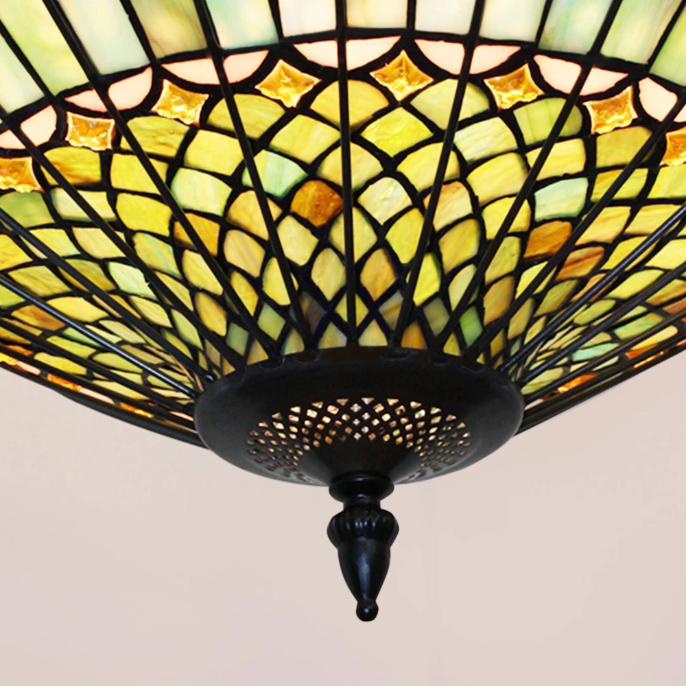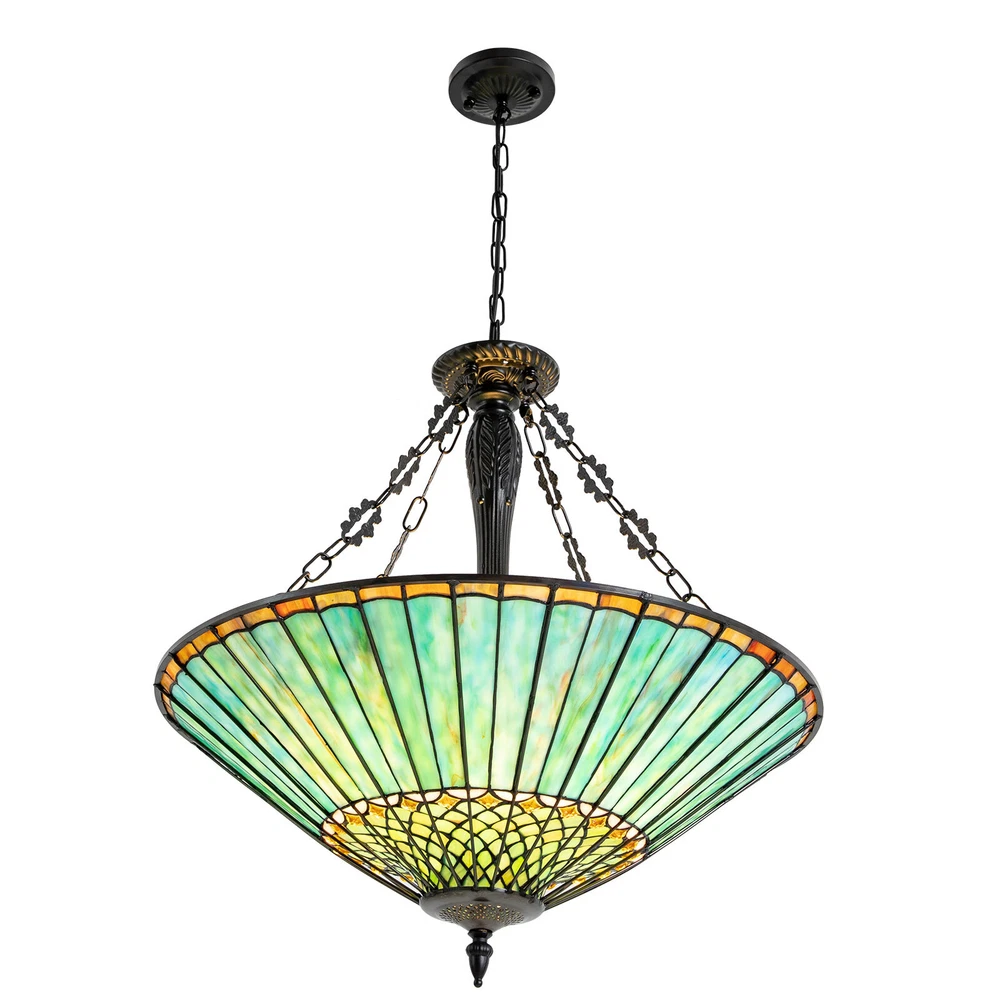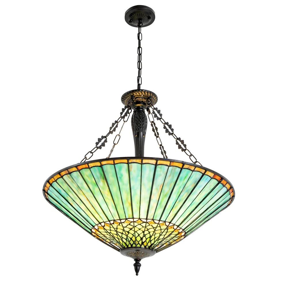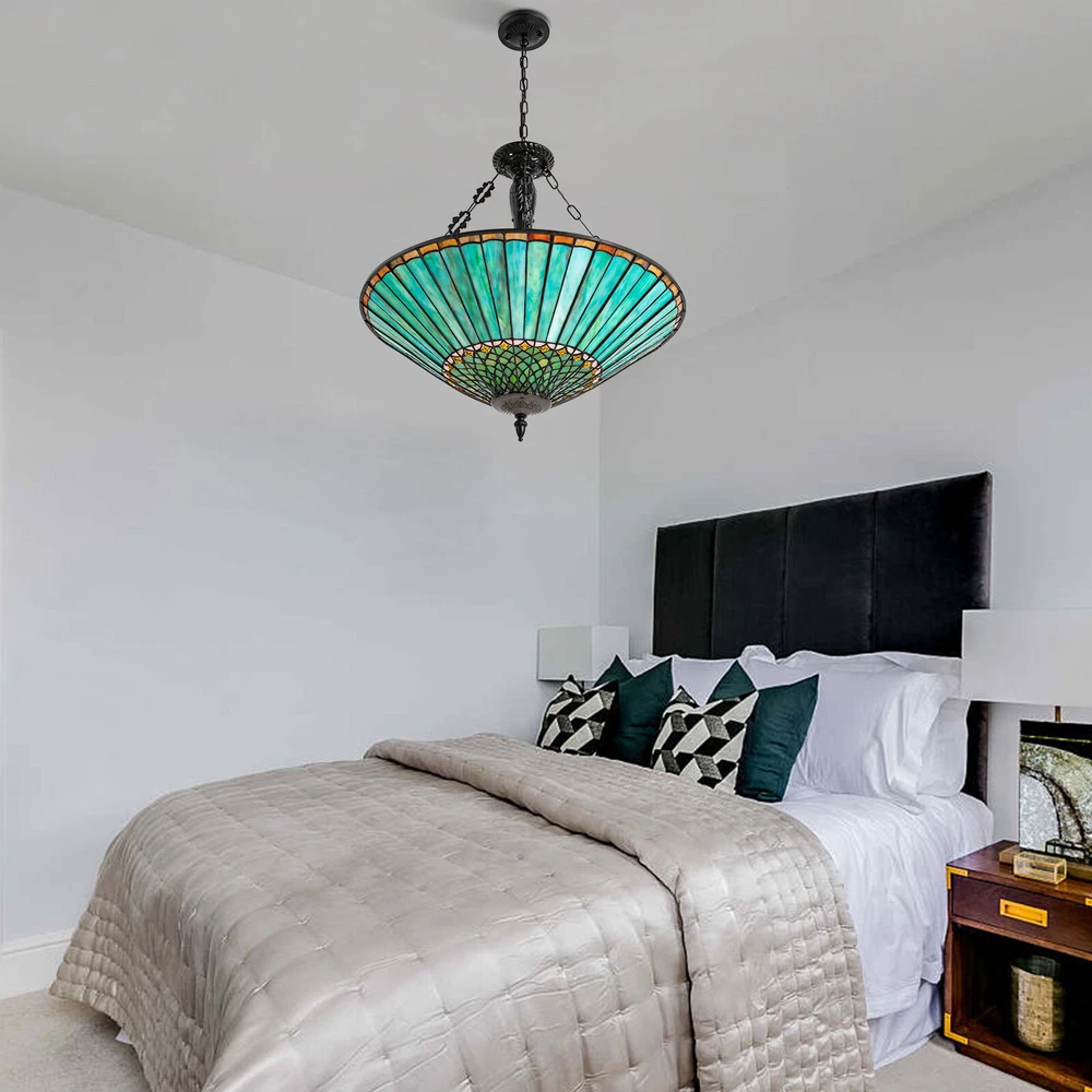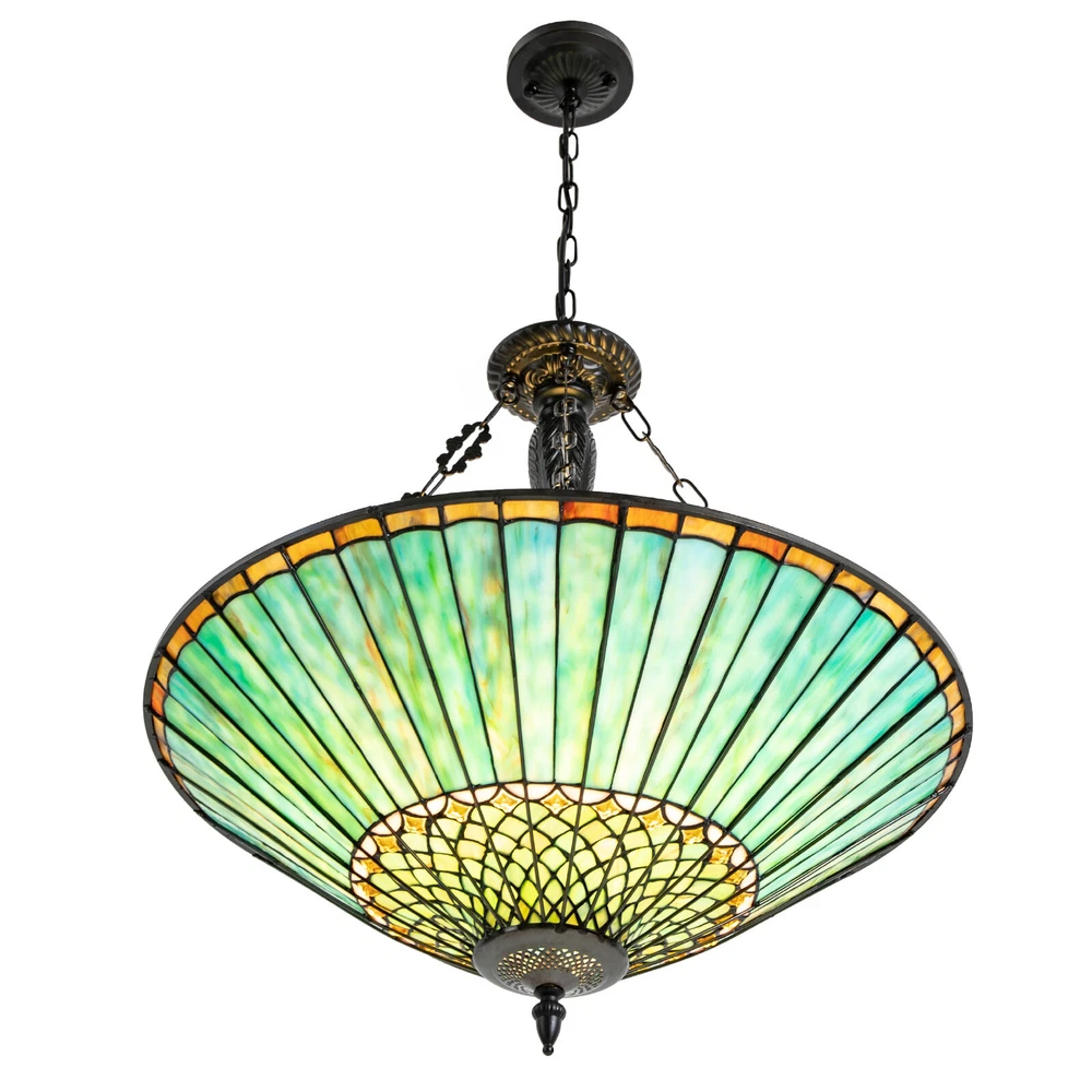 Specifications Style: Tiffany Color: Emerald Green (Light Off) Material: Stained Glass, Zinc Alloy Process: Stoving Varnish, Cutting, Polishing, Tin-soldering, Coating Technology Control Method: Reserved Wall Switch Mounting Type: Ceiling Mounted Light Fixture Form: Ceiling Power Source: Corded Electric Voltage: 110V Efficiency: E Light Source: 5*E26 Bulbs(Not Included) Bulb Types: Energy-saving Bulb, Incandescent Bulb, LED Max. Single Bulb Power: 80W Illumination Area: 15-20m²/ 161.45-215.27ft² Suitable Floor Height: 2.8-3.5m/9.18-11.48ft Adjustable Height: 50-100cm/19.68-39.37inch Chain Length: About 40cm/15.7inch Product Overall Height: 100cm/39.37inch Shade Diameter: 60cm/23.62 inch Base Diameter: 13cm/5.11inch Package Included 1* Pendant Light 1* English Manual Tiffany Stained Glass Ceiling Light Living Room Pendant Lamp Height Adjustable Description The Tiffany style pendant light with its gorgeous colors and classic conic shape is not only an excellent tool to light up your room but also embellish your room with unique and beautiful elements. With exquisite workmanship and durable stained glass, it is not easy to fade. You can install 5 E26 bulbs yourself such as incandescent and LED bulbs to create different lighting atmospheres and express your unique taste. Key Features Eye-Catching Tiffany Style: The umbrella-like shape light embellished with a special stained glass lampshade makes it appear distinct individuality and adds a sense of retro feelings to the modern environment. It appears natural emerald green color when the lights are off and presents different visual feelings under different lighting conditions. Long Service Life: Made of premium stained glass and zinc alloy with delicate cutting, polishing, splicing, high-temperature soldering, stoving varnish, and anti-rust oil coating processes, this pendant light is resistant to rust, wear, fade, corrosion, and deformation, so you can use it with confidence. Adjustable Height: You can adjust the overall height of this light from 19.68-39.37" by shortening or removing the hanging chain, thus creating different lighting effects and decorative appearance. Safety Guaranteed: The ground wire with over-temperature and overcurrent protections and the light bulb connection parts made of insulating bakelite improve the safety of use without worrying about electric shock. Easy to Clean: The smooth surface after stoving varnish and coating technologies makes it easy to clean by gently and smoothly wiping with a cloth. Ideal Gift: This product is stylish and high-quality and can be used as a housewarming, birthday, or holiday gift for parents, friends, and loved ones. Protective Package: To prevent the product from being damaged during transportation, we packed it with foamed plastic to protect your products to the maximum extent possible. Buy with Confidence: We are honored that you have chosen our product. We have sufficient confidence in the quality of the product so that you can buy it confidently. But if you have any questions, you can contact our customer service, he will patiently answer and solve your problems. Details Standard E26 Lamp Holder: 5 E26 holders can be adapted to various models of bulbs such as LED, incandescent, and energy-saving bulbs to create different lighting effects. You simply screw the bulbs off and change a new one on. Sturdy Chains&Base: The four sturdy chains firmly connect the lampshade to the lamp body, together with the thickened base of 5.11" in diameter, ensuring high stability and making you use this light with peace of mind. Application Its applicable area is about 161.45-215.27ft² and its applicable height is about 9.18-11.48ft. It is suitable for dining rooms, kitchens, living rooms, entryways, stairways, clothing stores, coffee shops, bars, bedrooms, studies, etc. Specifications Style: Tiffany Color: Emerald Green (Light Off) Material: Stained Glass, Zinc Alloy Process: Stoving Varnish, Cutting, Polishing, Tin-soldering, Coating Technology Control Method: Reserved Wall Switch Mounting Type: Ceiling Mounted Light Fixture Form: Ceiling Power Source: Corded Electric Voltage: 110V Efficiency: E Light Source: 5*E26 Bulbs(Not Included) Bulb Types: Energy-saving Bulb, Incandescent Bulb, LED Max. Single Bulb Power: 80W Illumination Area: 15-20m²/ 161.45-215.27ft² Suitable Floor Height: 2.8-3.5m/9.18-11.48ft Adjustable Height: 50-100cm/19.68-39.37inch Chain Length: About 40cm/15.7inch Product Overall Height: 100cm/39.37inch Shade Diameter: 60cm/23.62 inch Base Diameter: 13cm/5.11inch Package Included 1* Pendant Light 1* English Manual Notes You need 5 E26 bulbs with a single bulb less than 80W (not included), and please make sure the power is cut off before installation. To ensure your safety, we recommend that two people install this ceiling light together. Please install it by someone with an electrical license if necessary. Please check the product size before ordering to make sure it fits your room. It is suitable for flat ceilings but not arched or sloped ceilings. The product needs the reserved switch on the wall to control the light. If you need to adjust the brightness of the light, please install the dimmer switch on your own. The sound may be like plastic when you knock on the lampshade, but it is the feature of the Tiffany glass. If you still have doubts, the glass is fire-proof and scratch-resistant , you can put it on fire for a few minutes, or use a knife to cut it as tests. Please read the manual completely before use. Please allow the slight color difference caused by the shooting light and 1-3cm error due to manual measurement, and make sure you do not mind before you order. Payment Delivery details Terms of sales About us Contact us Payment We accept ebay payment 。 Fees such as import duties, taxes are not included in the item price or shipping costs. These charges are the buyer's responsibility. Delivery details Shipping: 2-9 working days to: USA Terms of sales We maintain hig