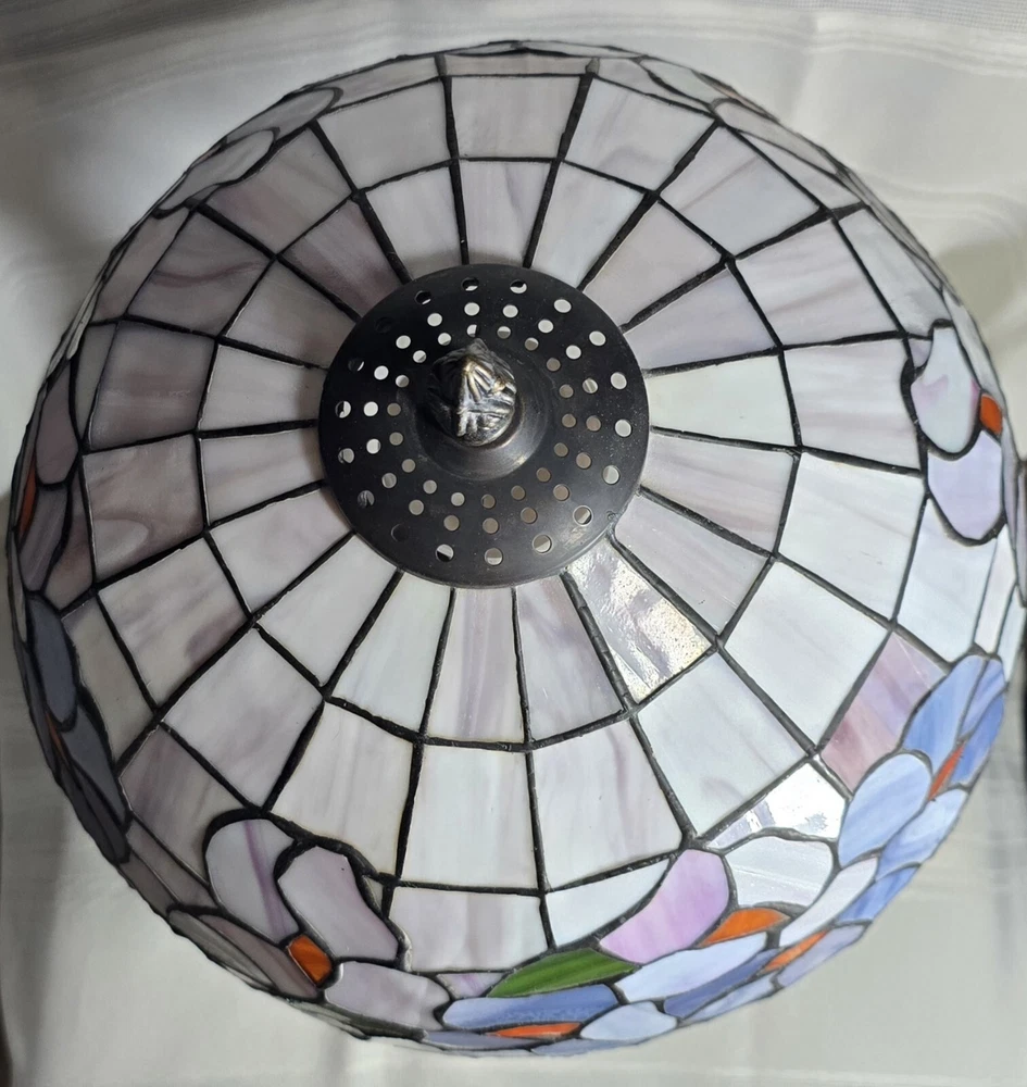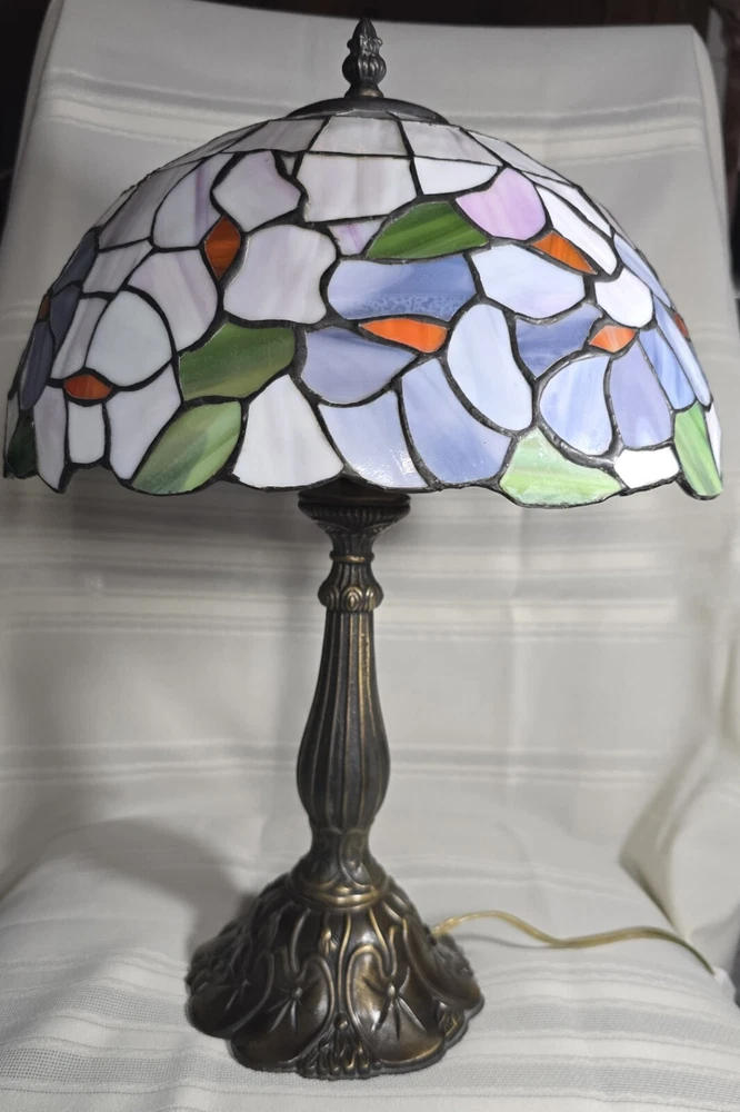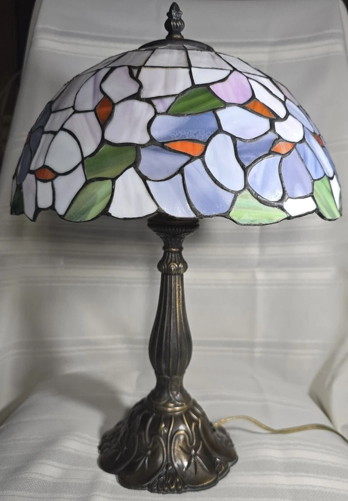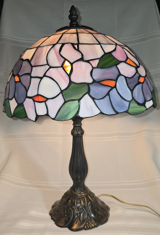 Tiffany Style Lamp Pink & Purple Floral Flowers Stained Glass . Condition is Used. Shipped with USPS Ground Advantage.