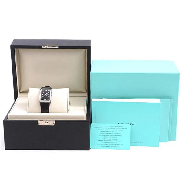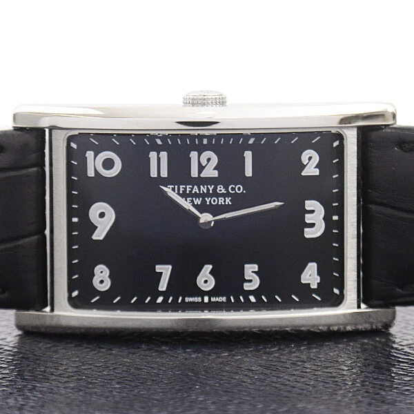 Tiffany Watch Men s Women s East West Black Dial Battery Operated Stainless St