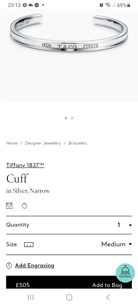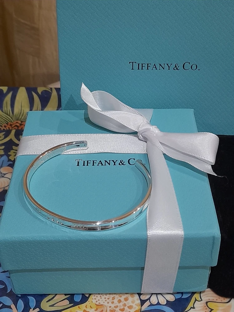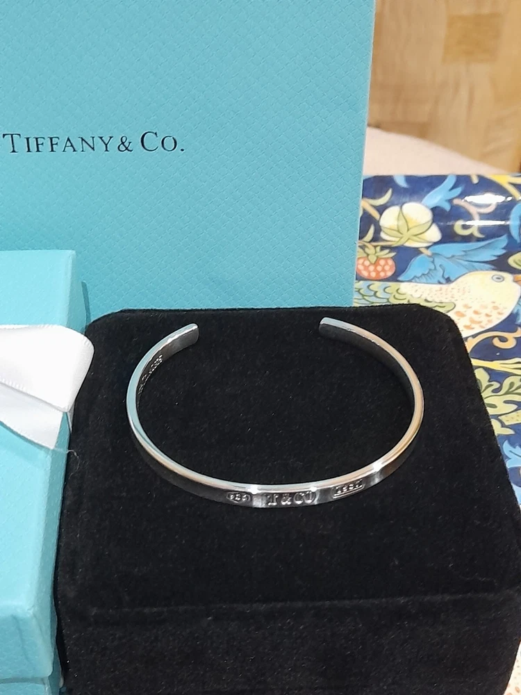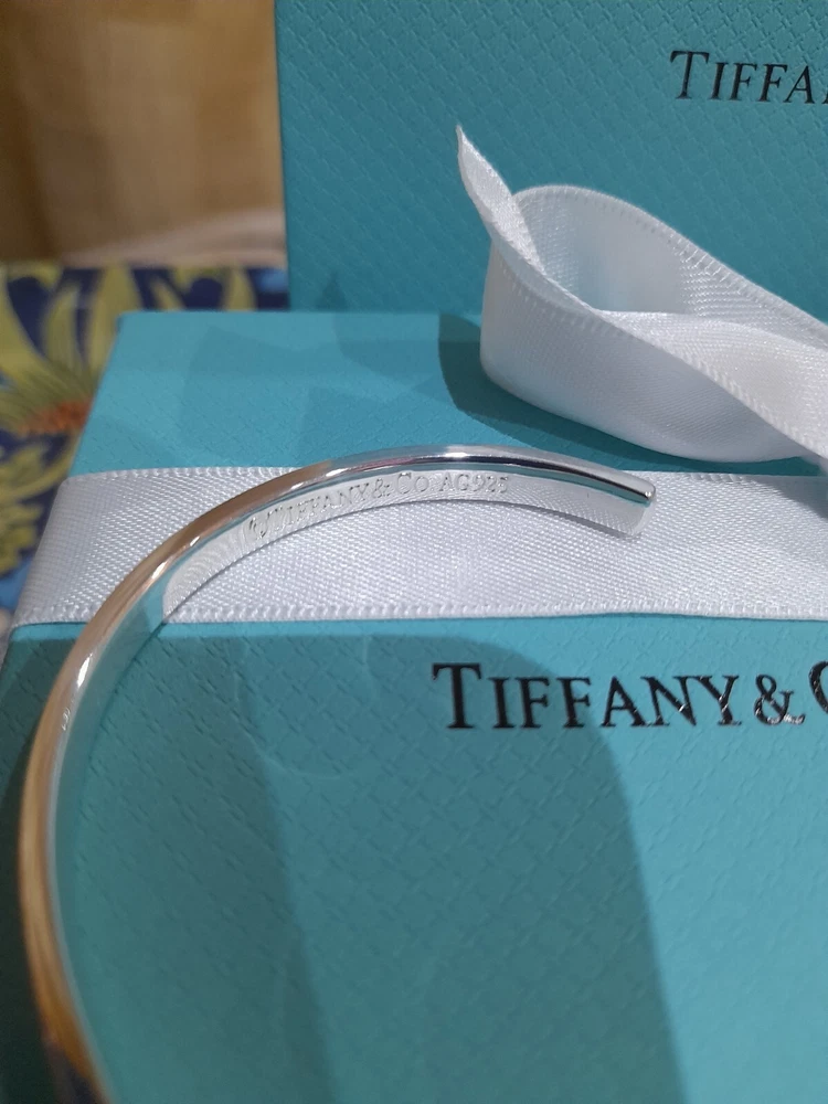 This brand new authentic Tiffany & Co. 1837 925 Sterling Silver Narrow Cuff Concave Open Bracelet is a stunning piece of the highest quality fine jewellery. Handmade in the United States, it features a concave shape and is engraved with Tiffany & Co. Ag 925, and is part of the Tiffany 1837 Makers collection. This stunning, elegant bracelet is crafted from solid 925 sterling silver with a width of 5mm and a total circumference of 19cm/7.5 inches, including the gap, size xl. The bracelet is hallmarked, signed, and comes with a certification engraved by Tiffany&Co. and hallmarked Ag 925. A versatile piece suitable for special occasions like engagements, anniversaries, birthdays, and Valentine's Day, it is a timeless addition to any jewellery collection πβ€οΈ Please see all the photographs of the actual item for sale as these form a part of this description and demonstrate all the details of this elegant bracelet, including its brand new condition, measurements, and weight. Perfect for gifting or treating yourself ππ Please note that this item currently retails at Β£505 on the current Tiffany&Co website (see final photograph), so this represents a real bargain π°β€οΈ Please note that this sale includes the Tiffany&Co black suede bracelet box, an outer box, a white ribbon, and a gift bag as photographed. Some of this packaging has been added to the original packaging to make this better for gifting. Hence, it is described as new without tags according to Ebay's descriptors π The sale also includes Royal Mail special delivery for tracking and insurance purposes. Once purchased, this beautiful bracelet will be carefully packaged and posted to you quickly, 1-2 working days, via Royal Mail special delivery π Thank you for looking π Please see my other listings for sale, which include many other stunning authentic Tiffany&Co. Items, both brand new and preloved, rare retired items ππ