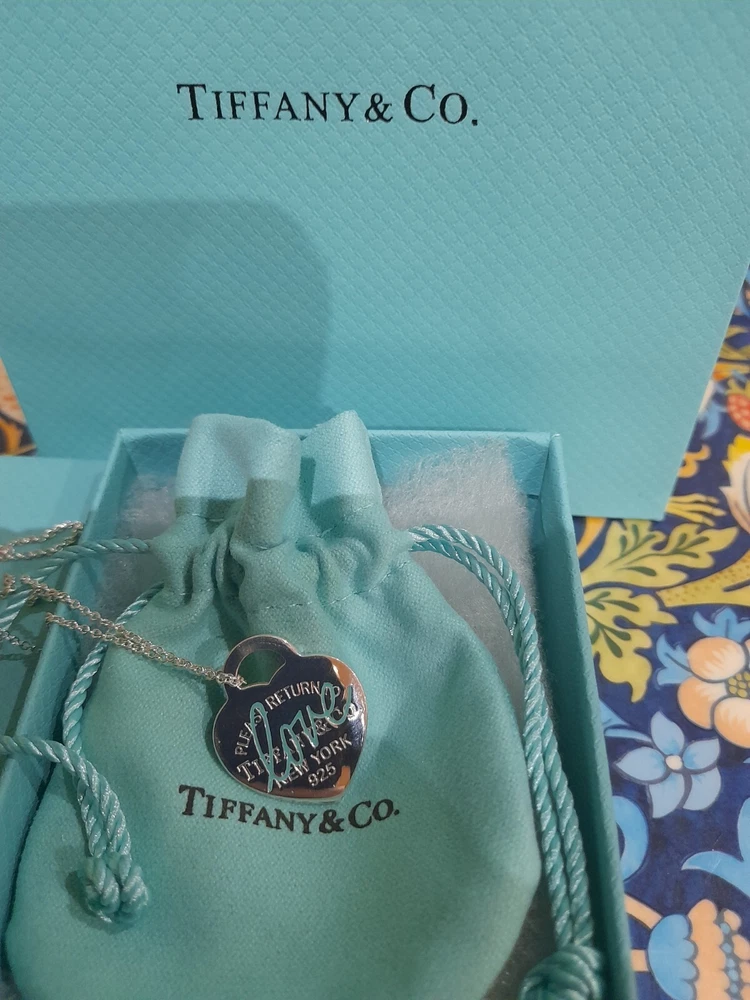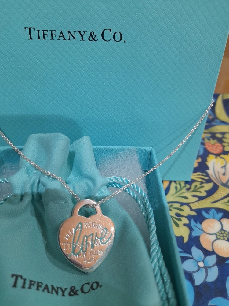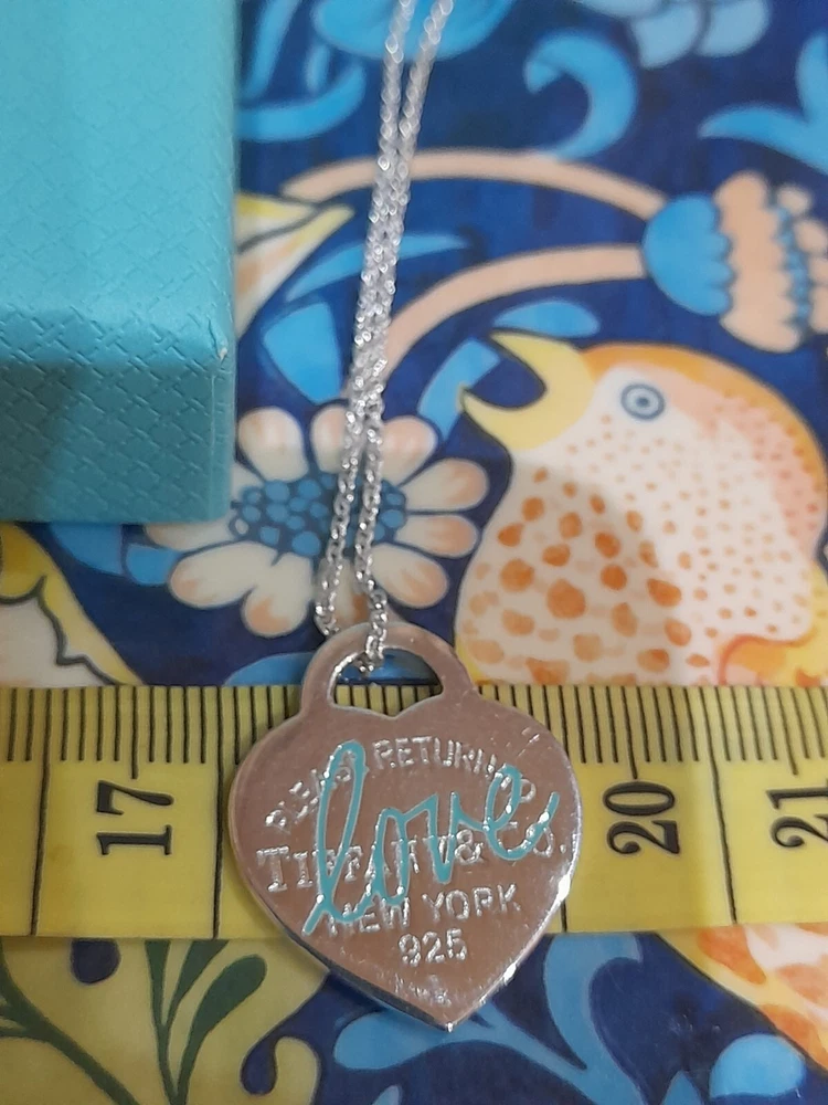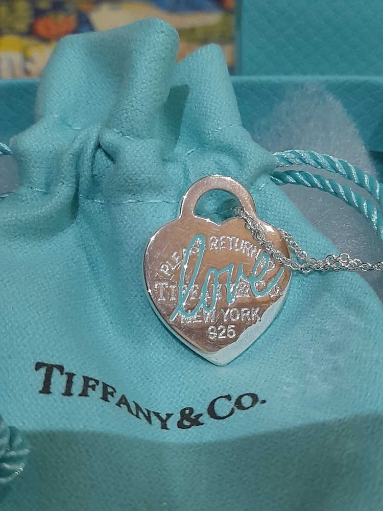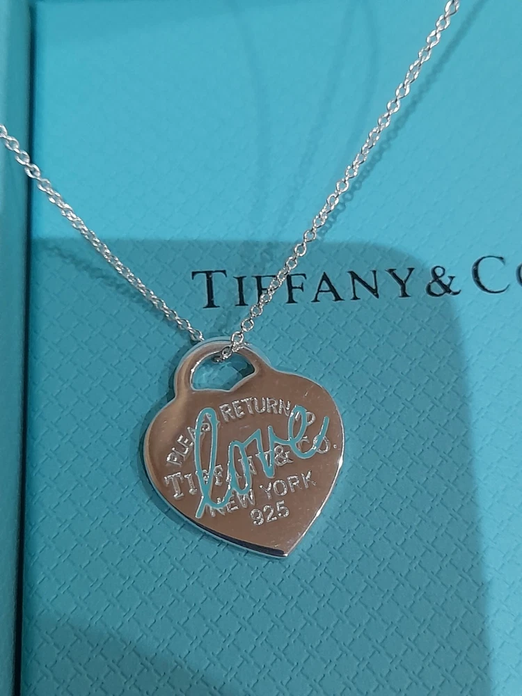This brand new authentic Tiffany & Co. Return To Tiffany necklace features a heart-shaped pendant made of 925 sterling silver, with a Tiffany Blue "Love" graffiti design. The pendant is reversible and adjustable, hanging on a 45 cm/18" oval link chain that can be adjusted to 16". The necklace weighs 5.3 grams and is hallmarked as authentic Tiffany & Co. It is signed and comes with an engraved certification. This charming piece is ideal for occasions like Mother's Day, anniversaries, birthdays, and Valentine's Day, making it a perfect gift for a loved one. Please see all the photographs of the actual item for sale as these form a part of this description and demonstrate all the details of this beautiful necklace, including it's brand new condition, its measurements, Tiffany and Co. markings, 925 hallmarking, and weight of 5.3 grams. The heart tag pendant measurements are: Length: 25 mm Width: 25 mm Please note that this item is no longer available on the current Tiffany&Co. website, making it a rare and beautiful find π Perfect for gifting π This sale includes the Tiffany&Co. pouch, a box, and a gift bag π PLEASE NOTE: Some of this packaging has been added to the original packaging to make this better for gifting. Hence, it is described as new without tags according to Ebay's descriptors π The sale also includes Royal Mail special delivery for tracking and insurance purposes π On purchase, this necklace will be carefully packaged together with the Tiffany accessories and posted quickly to you, 1-2 working days via Royal Mail special delivery. You should expect to receive the necklace on the following working day after postage by around 1pm π Thank you for looking π Please see my other listings for sale as these include many other stunning authentic Tiffany&Co. Items, both brand new items currently available on the Tiffany&Co website, brand new items retired from the current Tiffany&Co website, such as this necklace, making it a rare find, and other preloved retired rare items for sale ππ