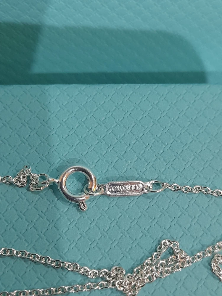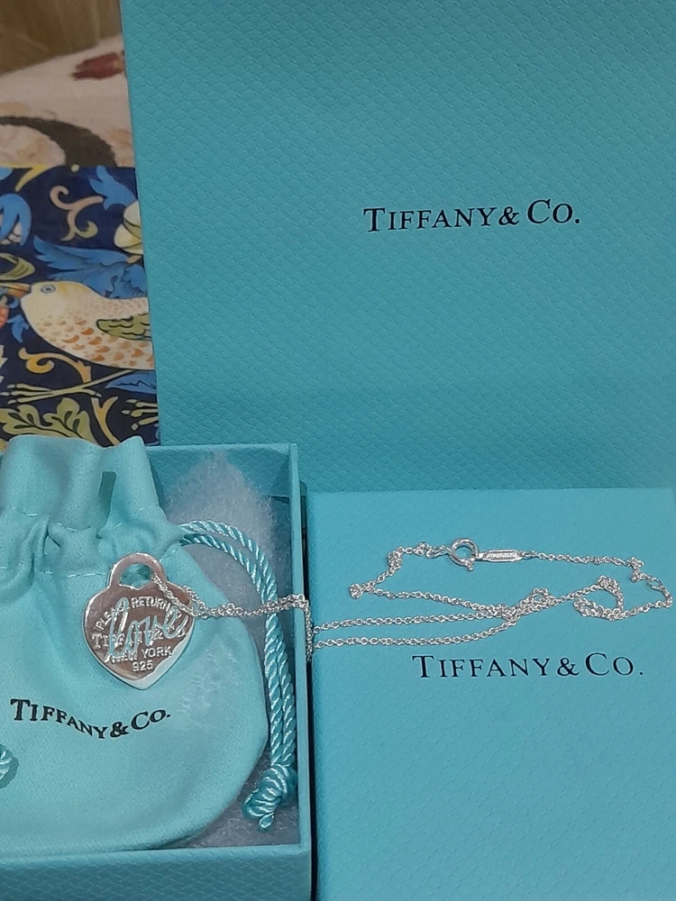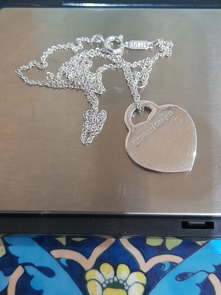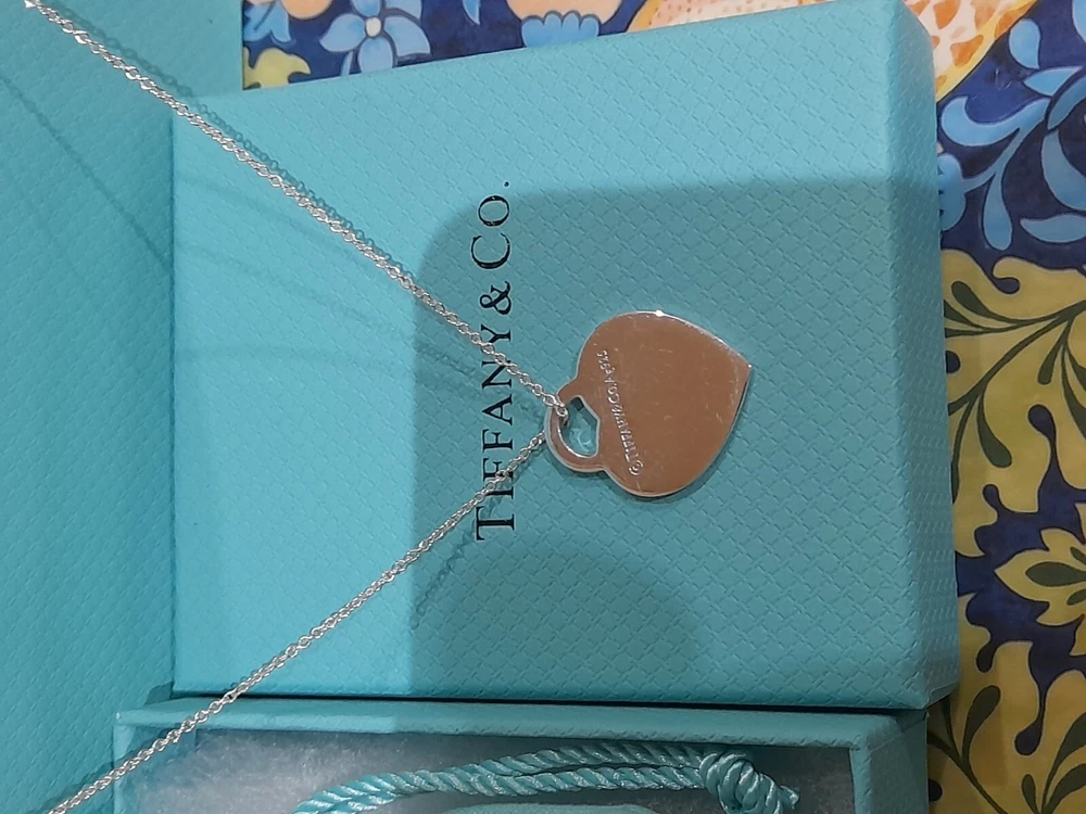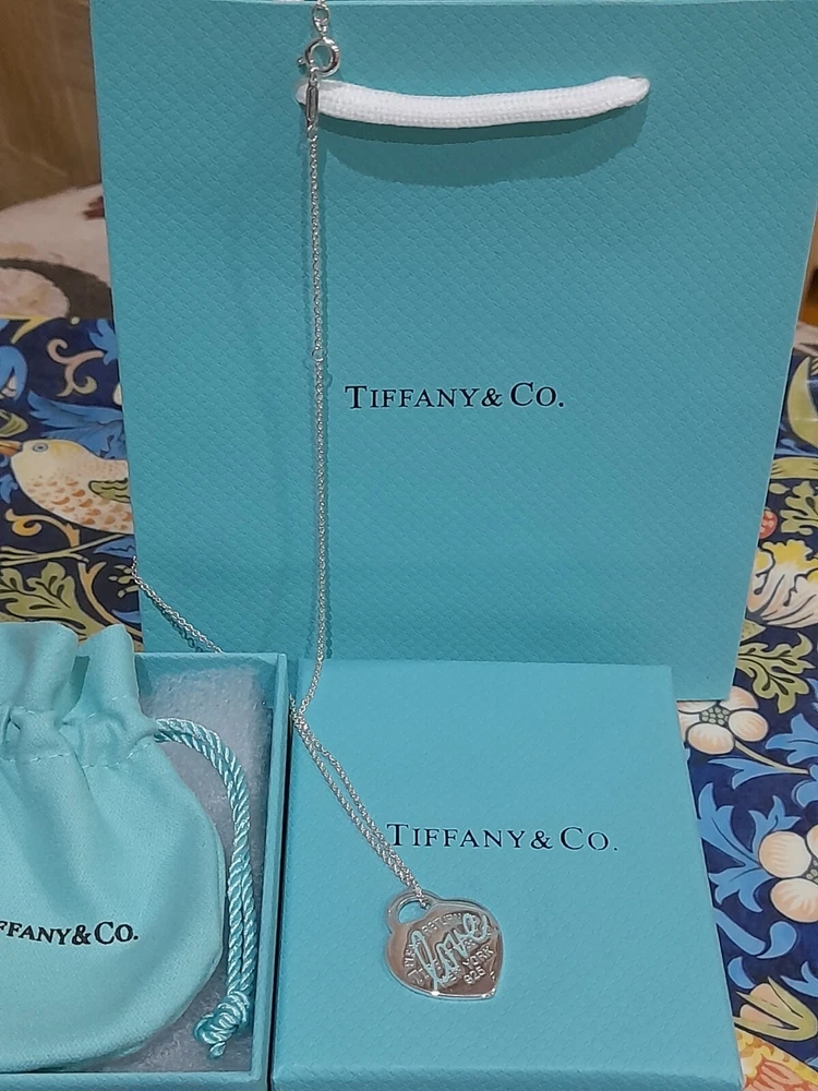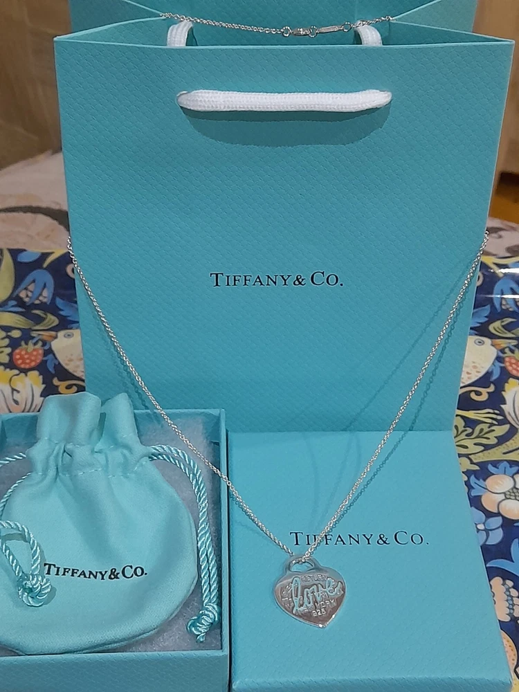 This brand new authentic Tiffany & Co. Return To Tiffany necklace features a heart-shaped pendant made of 925 sterling silver, with a Tiffany Blue "Love" graffiti design. The pendant is reversible and adjustable, hanging on a 45 cm/18" oval link chain that can be adjusted to 16". The necklace weighs 5.3 grams and is hallmarked as authentic Tiffany & Co. It is signed and comes with an engraved certification. This charming piece is ideal for occasions like Mother's Day, anniversaries, birthdays, and Valentine's Day, making it a perfect gift for a loved one. Please see all the photographs of the actual item for sale as these form a part of this description and demonstrate all the details of this beautiful necklace, including it's brand new condition, its measurements, Tiffany and Co. markings, 925 hallmarking, and weight of 5.3 grams. The heart tag pendant measurements are: Length: 25 mm Width: 25 mm Please note that this item is no longer available on the current Tiffany&Co. website, making it a rare and beautiful find π Perfect for gifting π This sale includes the Tiffany&Co. pouch, a box, and a gift bag π PLEASE NOTE: Some of this packaging has been added to the original packaging to make this better for gifting. Hence, it is described as new without tags according to Ebay's descriptors π The sale also includes Royal Mail special delivery for tracking and insurance purposes π On purchase, this necklace will be carefully packaged together with the Tiffany accessories and posted quickly to you, 1-2 working days via Royal Mail special delivery. You should expect to receive the necklace on the following working day after postage by around 1pm π Thank you for looking π Please see my other listings for sale as these include many other stunning authentic Tiffany&Co. Items, both brand new items currently available on the Tiffany&Co website, brand new items retired from the current Tiffany&Co website, such as this necklace, making it a rare find, and other preloved retired rare items for sale ππ