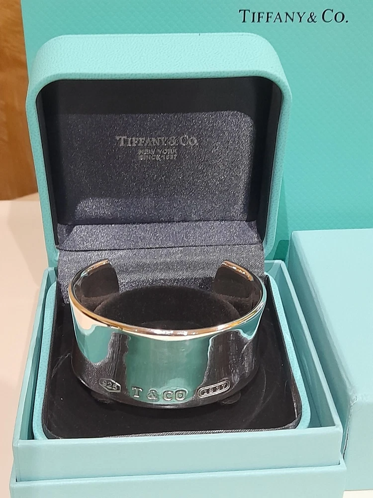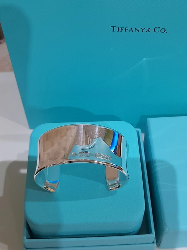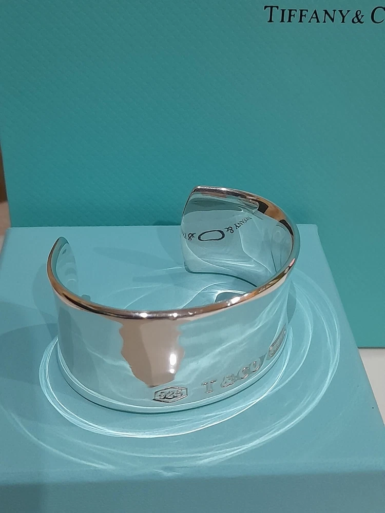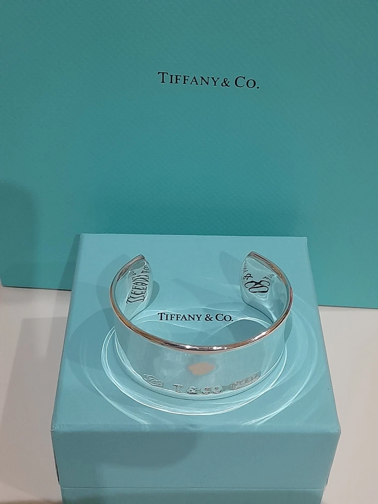 PLEASE NOTE: I will package and post this item or any other Tiffany&Co. item listed for sale quickly 1-2 working days after purchase by Royal Mail special delivery, so it will arrive on the following working day after postage around 1pm (UK) ππ Crafted by the highly esteemed Tiffany & Co., this solid sterling silver 925 extra wide cuff bracelet is an exquisite piece from the Tiffany 1837 collection β€οΈ With a total circumference of 7 3/8 inches, size large, it showcases a sophisticated oval shape and a concave design, giving it a modern yet timeless appeal. The bracelet's width measures 30mm, the bracelet's gap measures 1 and 5/8 inches, and the width across the bracelet is approx 2 and 5/8 inches. Fits wrists approximately 6.5 - 7 inches circumference.. The bracelet weighs 83.3 grams, showcasing its substantial feel without the embellishment of stones. The bracelet is finished in a lustrous silver hue, complemented by an engraved 925 hallmark, confirming its excellent quality. Its aesthetic is elevated by the iconic Tiffany & Co. branding, making it an inspirational and loving piece. Handmade in the United States, this bracelet is a perfect choice for various special occasions, including Christmas, anniversaries, birthdays, and Valentine's Day, or as a very thoughtful gift for any special occasion for someone special ππβ€οΈ Please see all the photographs of the actual item for sale as these form a part of this description and demonstrate all the details of this stunning authentic Tiffany&Co. Bracelet, including measurements, markings, 925 hallmarking, weight of 83.3 grams, and its excellent preloved condition π Perfect for a very special gift, or for treating yourself to something truly stunning ππβ€οΈ This iconic extra wide open cuff bracelet is part of the iconic Tiffany&Co 1837 range. Brand new, this item retails at Β£1325 on the Tiffany&Co website (see last photograph), so this sale represents an absolute bargain π°β€οΈ Please note that this sale includes the Tiffany&Co blue leather bracelet box, an outer box, and a gift bag as photographed πππ PLEASE NOTE : Some of this packaging has been added to the original packaging to make this better for gifting. Hence, it is described as new without tags according to Ebay's descriptors π This sale also includes Royal Mail special delivery, which includes insurance and tracking π Once purchased, this beautiful bracelet will be carefully packaged together with the Tiffany&Co packaging and posted quickly to you 1-2 working days π Thank you for looking π π β€οΈ Please also see my other listings for sale as these include many other stunning authentic Tiffany&Co. items for sale, both brand new, preloved, and rare retired items for sale ππβ€οΈ
