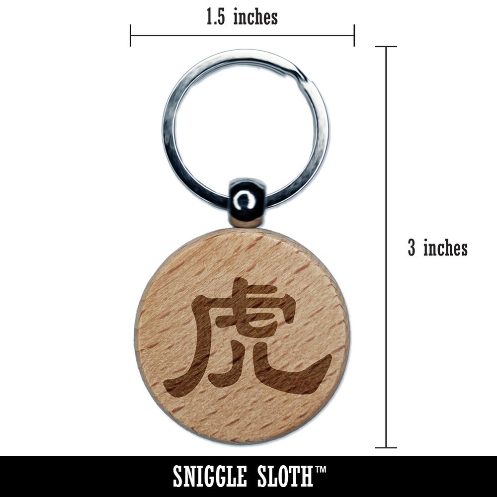 Tiger Zodiac Chinese Wooden Charm Engraved Round Keychain