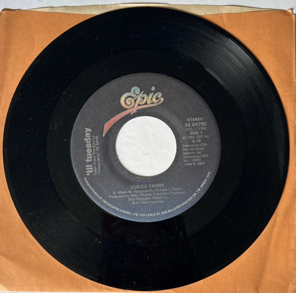‘Til Tuesday 7" Vinyl LP Voices Carry/Are You Serious? EPIC Records. I don’t think it is the original sleeve. FREE SHIPPING in Canada!!