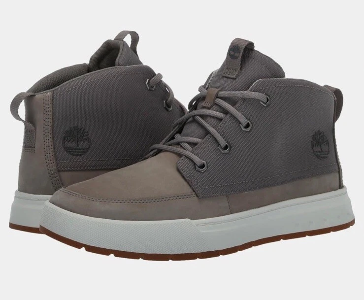 Elevate your casual and workwear outfits with these Timberland Maple Grove Mid lace-up sneakers in medium grey. The nubuck upper material and foam insole provide comfort and durability, while the EVA midsole type and rubber outsole material ensure a sturdy grip on any surface. These limited edition sneakers also feature ReBOTL™ fabric and are calf width medium. Perfect for travel and casual occasions, these sneakers are a must-have for any men's shoe collection. The round toe shape and solid pattern make them a versatile addition to any outfit. Don't miss out on the chance to own these high-quality Timberland sneakers.