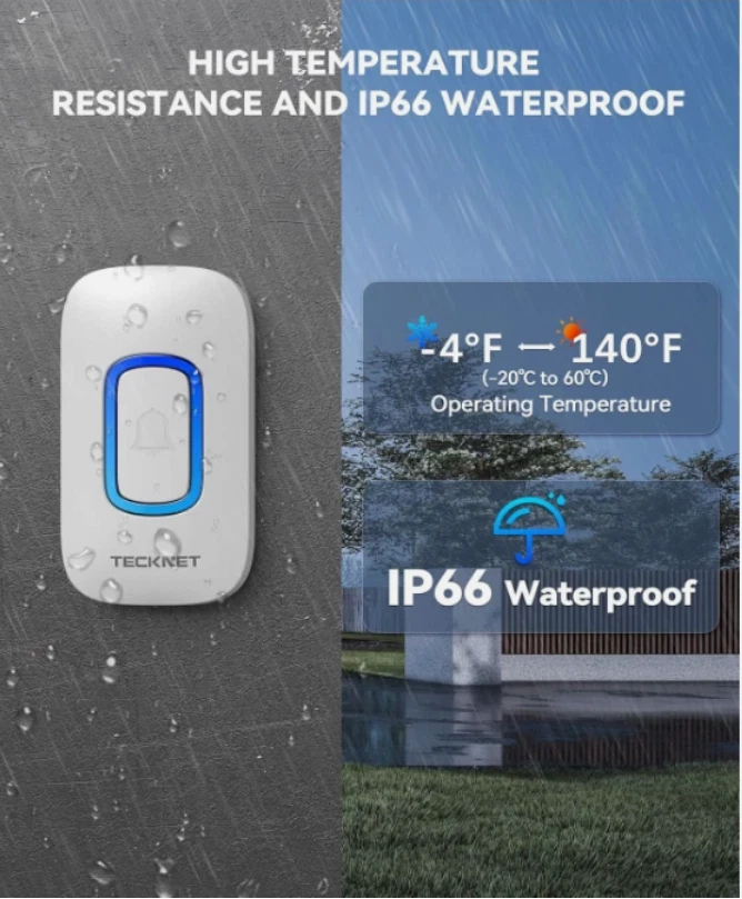 Wireless Waterproof Doorbell with 1300 Ft Range and 52 Melodies