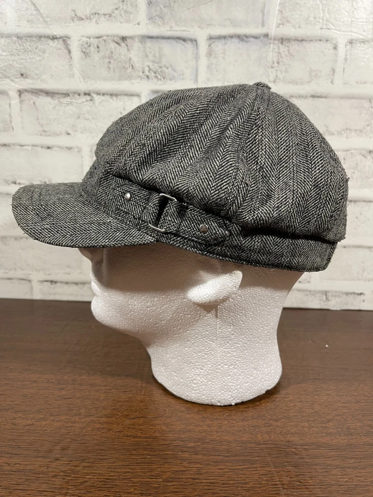 The Time and Tru Wool Blend Knit Cap is a stylish accessory perfect for women on the go. Made from a warm wool blend material in a classic gray herringbone pattern, this one-size cap features a unique buckle accent that adds a touch of flair. With its versatile style suitable for casual or travel occasions, this Time And Tru cap is a fashionable choice for all seasons. Very good preowned condition with normal preowned wear and some staining on the under side of the bill as pictured. Please see all photos.