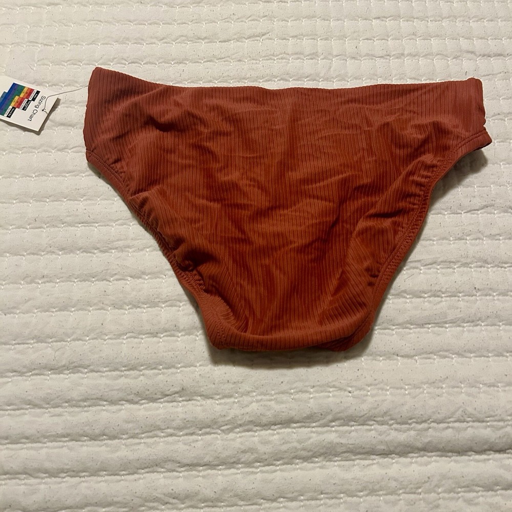Embrace the sunshine with Time and Tru's medium-sized women's bottom bathing suits, presented in a vibrant orange hue that's sure to make a splash. Designed for the modern woman, these bottoms are a testament to comfort meets style. Crafted to fit seamlessly into your regular size type, the piece is an essential addition to your swimwear collection. Whether it's for a day at the pool or a beach getaway, these bottoms promise an effortlessly chic look that's perfect for the season.