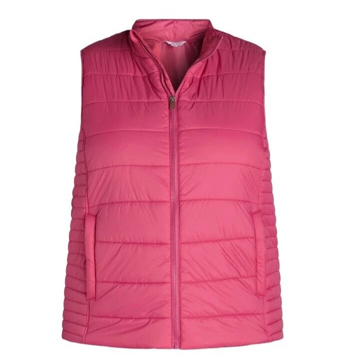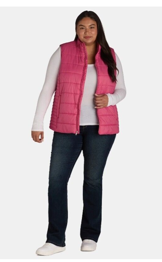 Product details Mix up your chilly weather layers with this stylish and versatile Puffer Vest from Time and Tru. A winter wardrobe essential, this puffer vest features a classic quilted design and ultra-lightweight, plush filling for added warmth without all the bulk. Layer this puffer vest over a long-sleeve, sweater, or hoodie. So many fun combos for so many occasions—on a hike, to run errands, or on your way to class. This puffer vest is sure to be your new go-to for fall and winter. Material: Shell: 100% Nylon; Filling: 100% Polyester; Lining:100% Polyester Care: Machine washable Country of Origin: Imported Size: Model is approx. 5’10” and is wearing a size S Fit Classic Weight: Lightweight Collar: Stand collar Closure: Front zip Sleeves: Sleeveless Pockets: 2 on-seam welt pockets Features: Zipper guard at neck; quilted pattern for elevated look; solid hues or pearlized hues Puffer Vest for Women and Plus Size Women from Time and Tru Fabric Care Instructions Machine Wash Cold; Only non-chlorine bleach when needed; Wash with like colors; Tumble dry low; Do not Iron; Close zipper before washing, remove promptly.