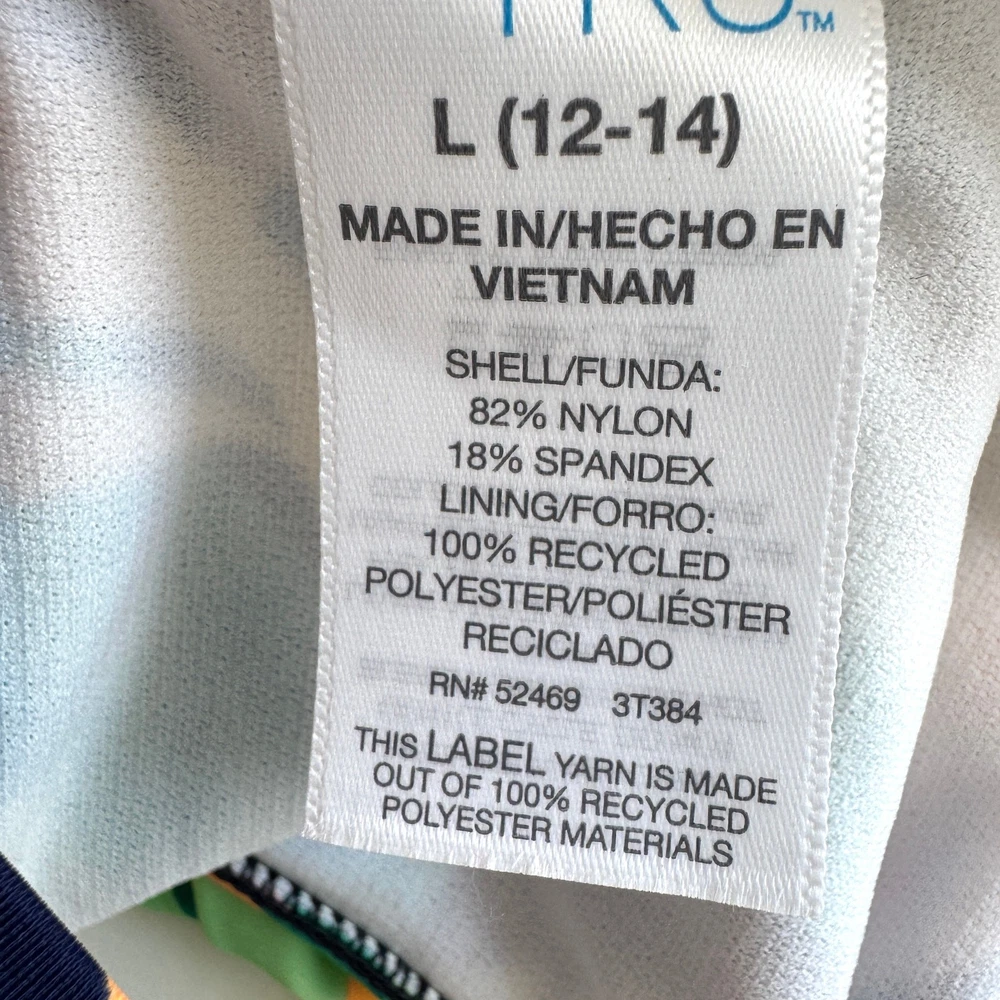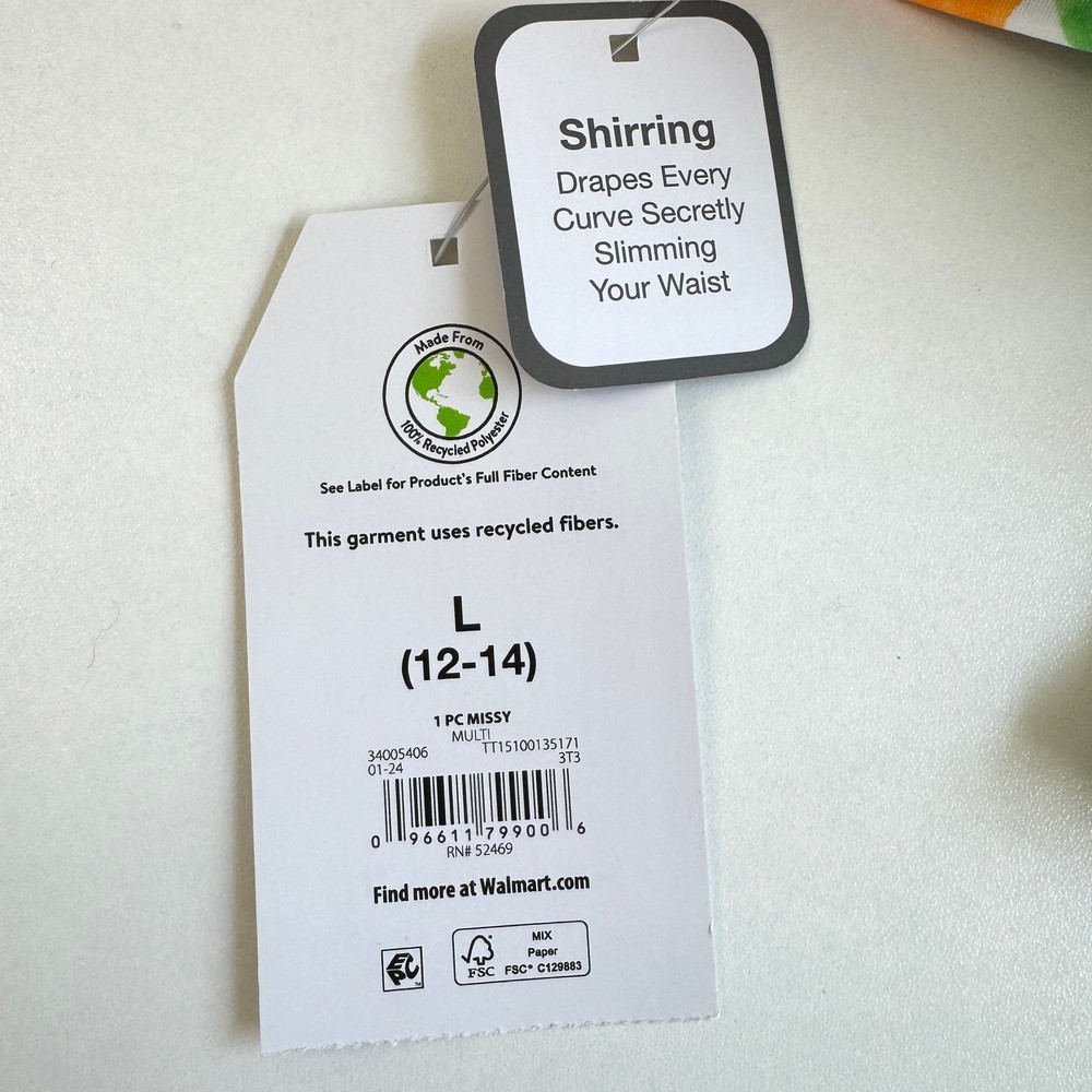 Brand: Time and Tru Size: Large (12-14) Measurements: Please see last photo for approximate measurements. Condition: Brand New With Original Tags Attached. Color: Green, black, orange, multi Material: Nylon, spandex Features: Adjustable straps Full seat coverage Padded shelf bra (non removeable cups) Style: spring, summer, travel, resort wear, cabana, beach, pool, resort, cruise, warm weather, casual, vacation, summervibes, beachvibes, coastal, nautical, swim, pool, tropical, floral
