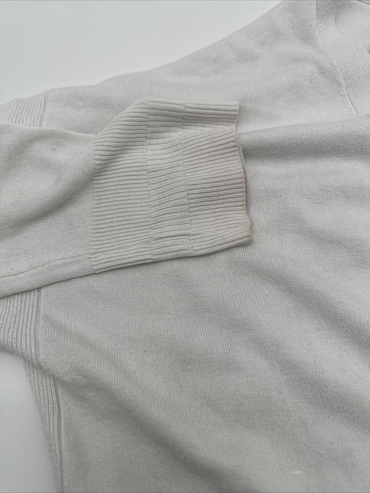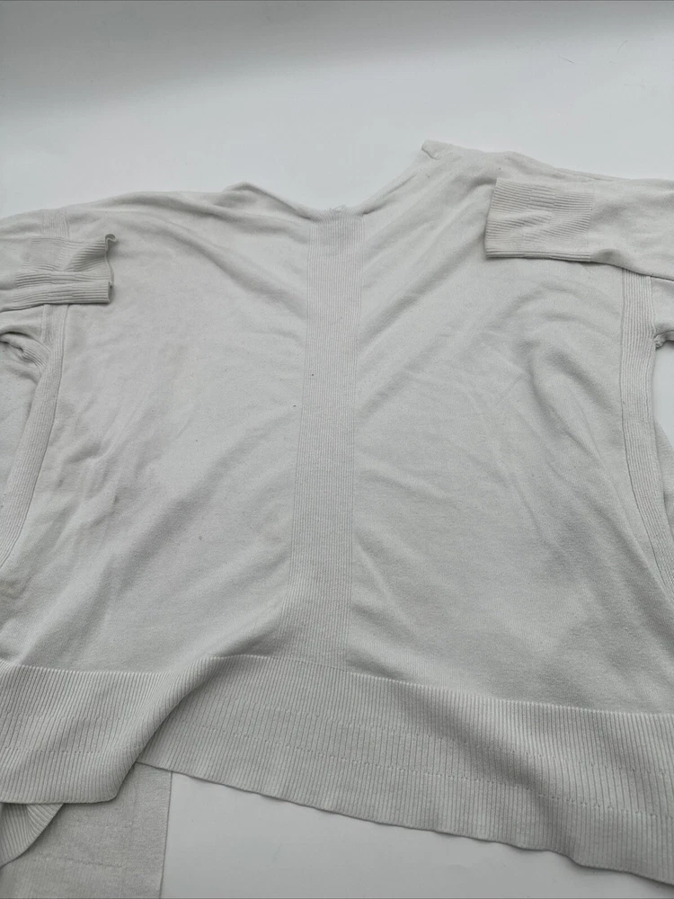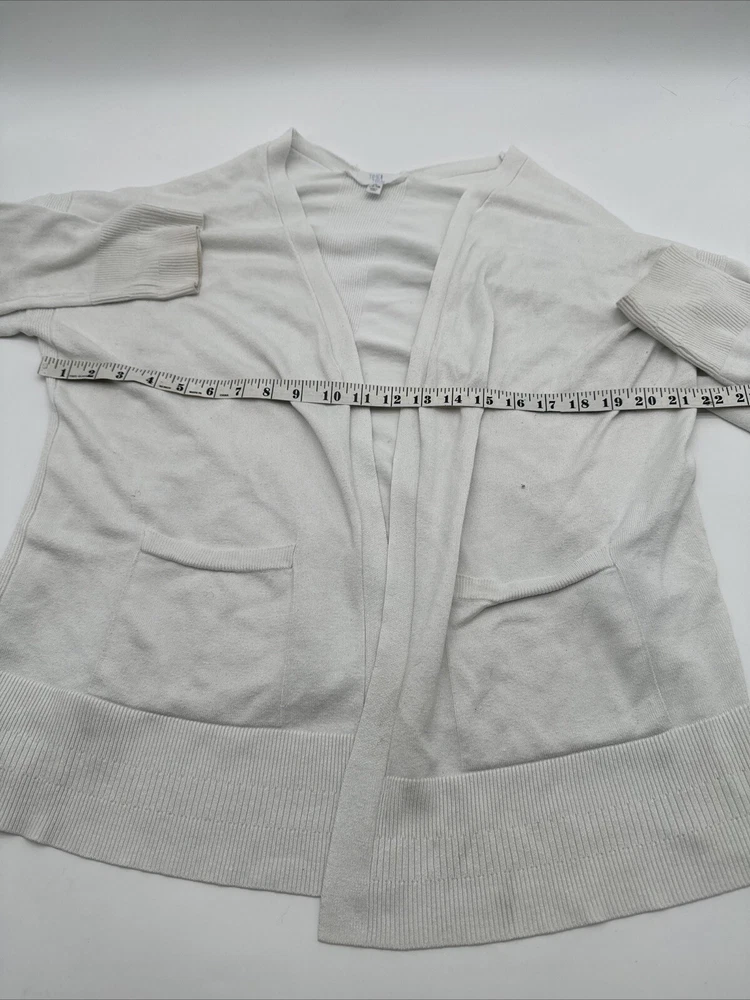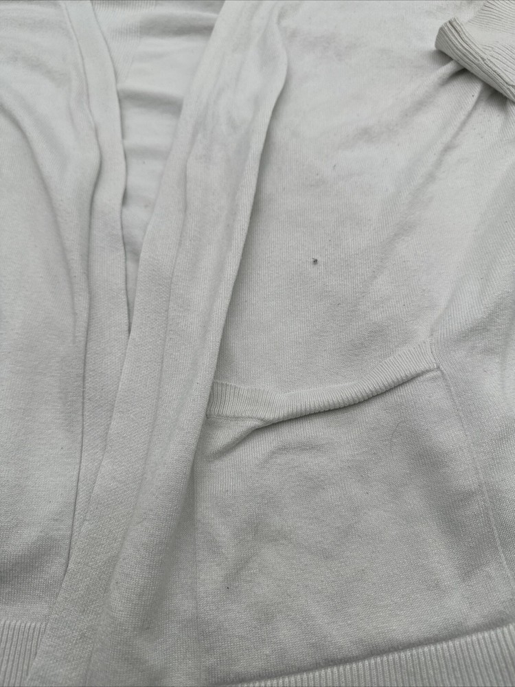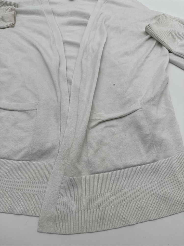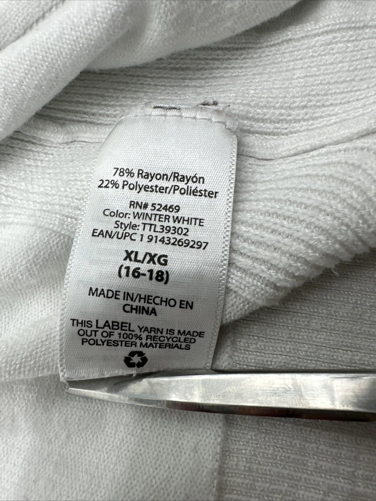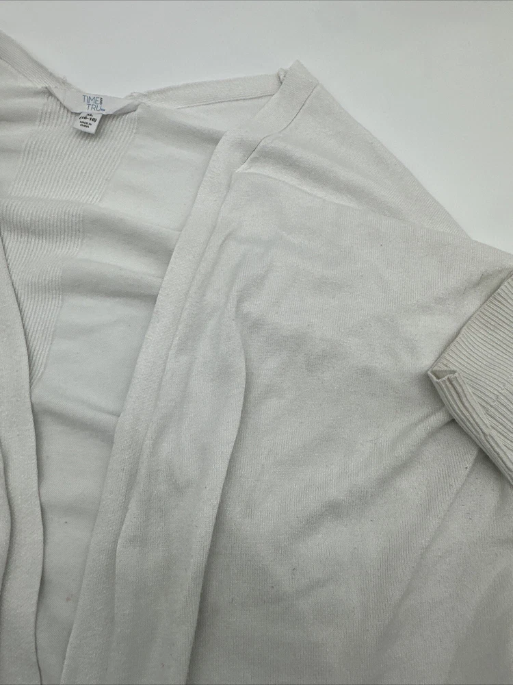 This Time and Tru cardigan for women in size XL is a classic piece for any casual occasion. The white solid pattern is elegant and versatile, while the long sleeves and open style make it comfortable and easy to wear. Made of polyester and rayon, the material is lightweight and soft, ensuring a pleasant fit. The cardigan is designed with a regular fit and size type, perfect for any women's department. The brand, Time & True, is known for its quality and style, making this sweater a great addition to any wardrobe. The sweater is manufactured in China and features an open style, making it perfect for layering over any outfit. *Check the images above for the flaws and measurements of the item.