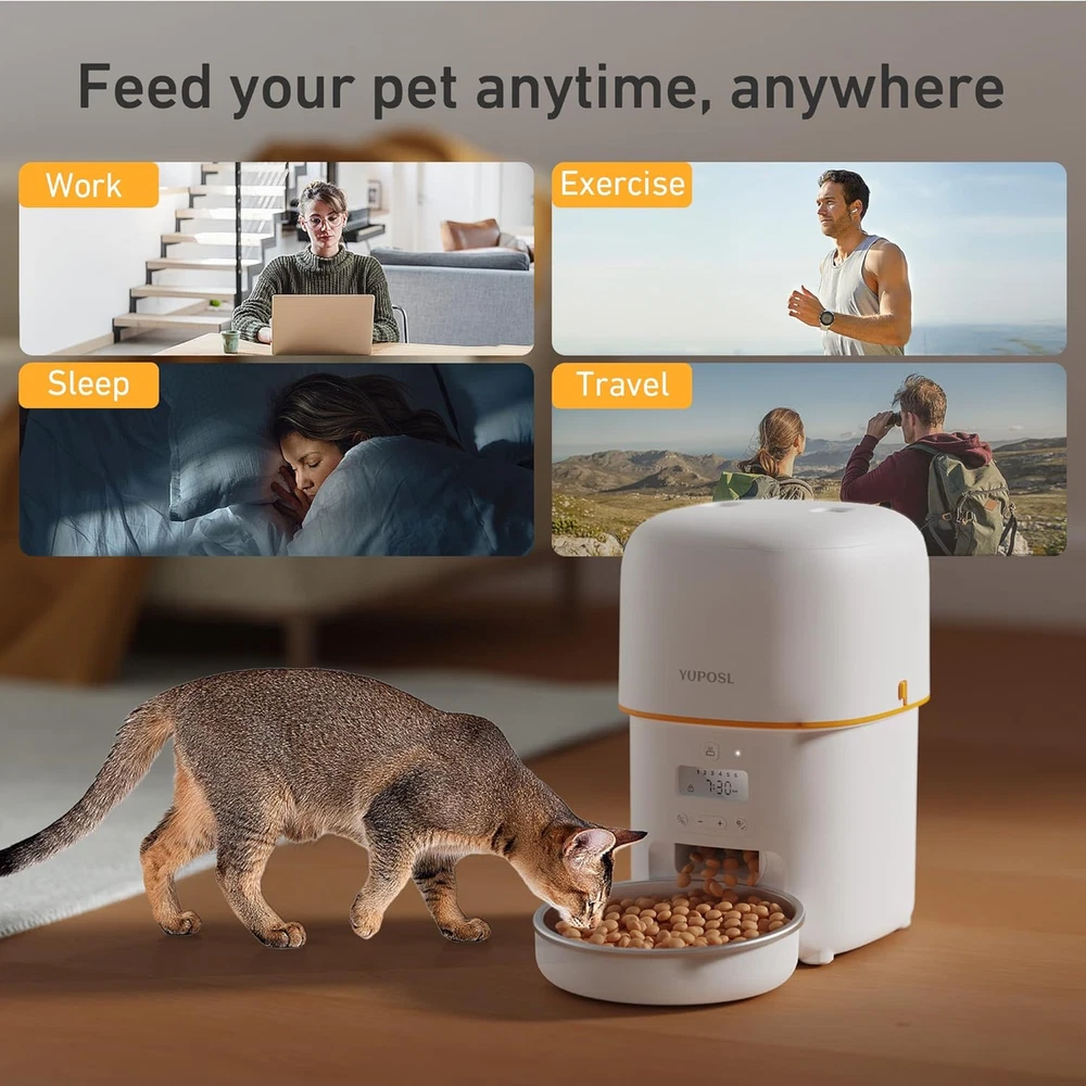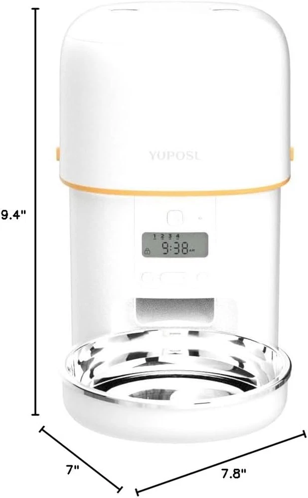 Store New Arrivals Add to Favorite View Feedback Contact Automatic Cat Feeders - 2L Cat Food Dispenser Easy to Use, Timed Automatic Pet Feeder with over 180-Day Battery Life, 1-6 Meals Dry Food Programmable Portion Control Also for Dogs Description Item model number YPF01-B001 Age Range Description All Life Stages Warranty Description 1 year manufacturer Number of Items 1 Style 1 Pack Target Audience Keyword house-cats, small-animal-pets, dogs, Cat,Dog,Small animal Breed Recommendation Small,Medium,Large Brand Name Yuposl Product Dimensions 7 x 7.8 x 9.4 inches; 2.9 Pounds Material Stainless Steel, Plastic, Acrylonitrile Butadiene Styrene Model Name YPF01-B001 Directions 1 Years Warranty Is Discontinued By Manufacturer No Item Package Dimensions L x W x H 12.17 x 8.03 x 6.93 inches Manufacturer Yuposl Item Weight 2.9 Pounds Specific Uses for Product Outdoor, Indoor Item Dimensions LxWxH 7 x 7.8 x 9.4 inches Color White Target Species cats,small dogs,small animals Recommended Uses For Product Feeding your Pets with Hand Remote Included Components Automatic Cat Feeder Brand Yuposl Size 2L Timed and Dosed Feeding: Schedule 1–6 meals per day with customizable portions to suit your pet's needs. Our automatic cat feeder accommodates dry food sizes ranging from 2–15mm, ensuring smooth dispensing without jams, even with larger kibble types like cat dental diets. Unlike other feeders that struggle with bigger pieces, our design ensures consistent feeding, providing your pet with a healthy and happy lifestyle, even when you're away. Keeps Food Fresh effectively: 2L/8 Cups capacity ensures the freshness of your pets' food. The pet feeder effectively insulates the air through the soft rubber rotor, and the upper part keeps the food fully fresh by strengthening the seal of the top lid and using desiccant. The Food-grade stainless steel bowl provides healthy and hygienic feeding, reducing the risk of chin acne for your pets. Dual Power Supply: Our auto pet feeder powered by 3 D-size alkaline batteries (Not Included) can provide more than 180 days of using, allowing you to easily place it anywhere in the room, and you can fully escape from hassle of messy cables. Of course feeder also supports wall power supply, giving you full flexibility and convenience. Say No to Naughty Paws: Tired of pets stealing extra food? We've got you covered. Our cat food dispenser features a spring-lock lid and a silicone sealing rotor that secures the food outlet between feedings. Even the cleverest paws can't sneak food out, no sticking paws up the food outlet, no endless snacking. Your cat gets the right amount of food, at the right time, every time. Suitable Two or more Pets: Small, cute and doesn't take up much space. Each pet can have its own dedicated automatic feeder. Multiple feeders help separate multiple pets without waiting and fighting for food. It helps you feed your pets more healthy and freely. Product Description 1 Keep Dry Food Fresh 2 Recommended Kibble Size 3 Dual Power Supply 1 Supply Days 2 Easy Operation 3 Manual Feeding 4 Stainless Steel Bowl Based on Yuposl Automatic PET Feeders Add to Cart Add to Cart Add to Cart Add to Cart Add to Cart Customer Reviews 4.4 out of 5 stars 3,391 4.2 out of 5 stars 226 4.4 out of 5 stars 554 4.4 out of 5 stars 3,391 4.4 out of 5 stars 3,391 4.4 out of 5 stars 554 4.4 out of 5 stars 554 Price $33.99 $ 33 . 99 $55.99 $ 55 . 99 $47.99 $ 47 . 99 $35.99 $ 35 . 99 $26.99 $ 26 . 99 $47.99 $ 47 . 99 — Capacity 8cup/68oz 8cup/68oz 8cup/68oz 16cup/135oz 8cup/68oz 8cup/68oz 16cup/135oz Meals Setting 1-6 Meals 1-15 Meals 1-15 Meals 1-6 Meals 1-6 Meals 1-15 Meals 1-15 Meals Portion Setting 1-16 Portions 1-99 Portions 1-16 Portions 1-16 Portions 1-16 Portions 1-16 Portions 1-16 Portions Allowed Kibble Sized 2-15mm 2-15mm 2-15mm 2-15mm 2-15mm 2-15mm 2-15mm Each Portion Sized 10ml ≈1/24cup ≈2/3tbsp ≈2tsp 10ml ≈1/24cup ≈2/3tbsp ≈2tsp 10ml ≈1/24cup ≈2/3tbsp ≈2tsp 10ml ≈1/24cup ≈2/3tbsp ≈2tsp 10ml ≈1/24cup ≈2/3tbsp ≈2tsp 10ml ≈1/24cup ≈2/3tbsp ≈2tsp 10ml ≈1/24cup ≈2/3tbsp ≈2tsp Control Manual APP APP Manual Manual APP APP Internet × 5G/2.4G 5G/2.4G × × 5G/2.4G 5G/2.4G Food Bowl Ceramic Stainless Steel Stainless Steel Stainless Steel Stainless Steel Stainless Steel Stainless Steel ABOUT US We offer the best prices around on high quality products. Our E-store includes media such as books, movies, music and games while offering electronics, toys, sporting apparel, clothing, tools, general home, garden items and more. SHIPPING We are always working hard to ensure your package arrives as soon as possible. Please understand that some factors like weather, high postal traffic, and the performance of shipping companies are outside of our control. We offer free shipping to the lower 48 states and ship within 2 business days of payment, usually sooner. We do not accept P.O. Boxes. Please provide a physical address. RETURNS We offer a 30-Day Return Policy on items which you are not completely satisfied with. You have the option for a full-refund or an exchange of the item. No returns are available on items shipped outside of the USA. PAYMENT We accept PayPal. CONTACT US This page content is yet to come Please ad us to your favorite seller and visit again later Thank You CUSTOMER SATISFACTION We try our very best to make sure every customer is completely satisfied. If there's a problem, message us! We're happy to help.