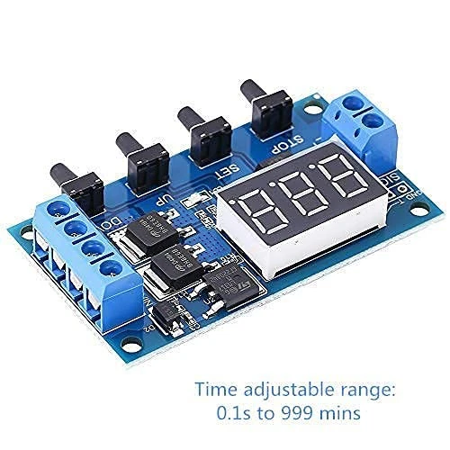 ★Wide working voltage:The trigger cycle timer delay controller module work voltage is DC 5V-36V. Meet the use of most equipment. Control Current is 30A(Max and need a heat sink! Normal temperature 15A 400W). Trigger signal source: High-level trigger (3.0V~24V) Different parameters can be set: OP、CL、LOP these parameters can be set. OP-on time, CL-off time, LOP-number of cycles (1—999 times, "---" means infinite cycles). These parameters are independent of each other and saved separately. All set parameters are automatically saved after power-off ★key stop function:The module with key stop function (STOP key), with reverse connection protection, reverse connection will not burn. And it supports sleep mode. After enabling, the display will automatically turn off if without any operation within 5 minutes. Press any button to wake up ★Unlimited switching times:This time delay switch circuit can realize the circuit high frequency fast and frequent on and off, unlimited switching times. No noise will be generated during the on-off process, no sparks, and no electromagnetic interference. The service life is longer than that of common electromagnetic relays ★Dual MOS output: This MOS tube pulse generator uses dual MOS parallel active output, lower internal resistance, higher current, and strong power. 15A, 400W at normal temperature. For more details, please read the user manual