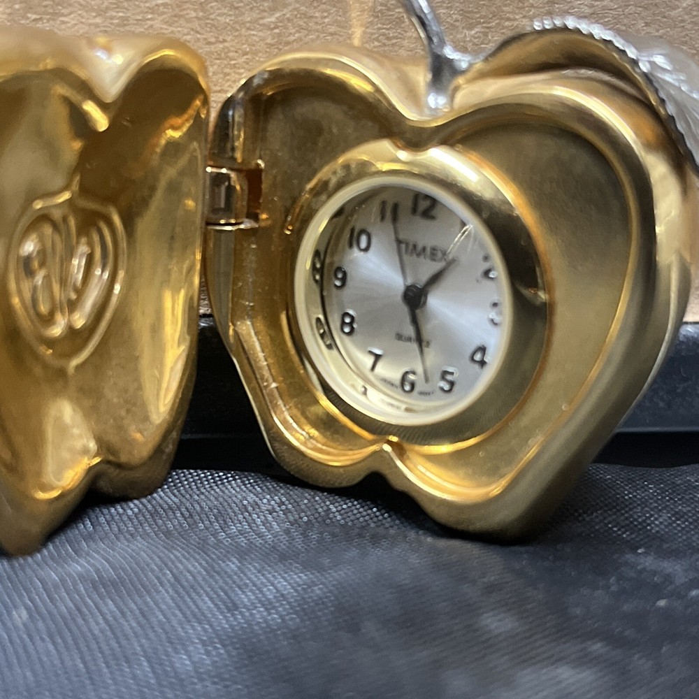 Embrace the charm and functionality of the Timex Golden Apple Mini Clock, a delightful addition to any space. This novelty clock boasts a quartz movement powered by a battery, ensuring precise timekeeping. Its unique apple shape, combined with a classic gold finish, offers a touch of elegance and whimsy to your décor. Crafted in Japan, renowned for its quality timepiece production, this original piece features an analog display that provides easy reading of the time. The clock comes with a China case, which complements its aesthetic while preserving the item for years to come. This piece is a testament to Timex's dedication to creating innovative and stylish time accessories.
