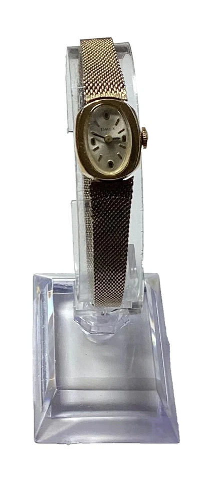 This Timex women's vintage mechanical watch is a stunning piece that will complement any outfit. The gold and white oval mesh band adds a touch of elegance to the watch, while the polished case finish gives it a classic look. The watch features stick indexes and 2-tone oval indicies, which are easy to read. The watch is water-resistant and has a 12-hour dial, making it a practical choice for everyday wear. The hidden fold clasp ensures that the watch stays securely on your wrist, while the snap caseback allows for easy access to the mechanical movement. This Timex watch is a great addition to any watch collection and is sure to impress. 883.