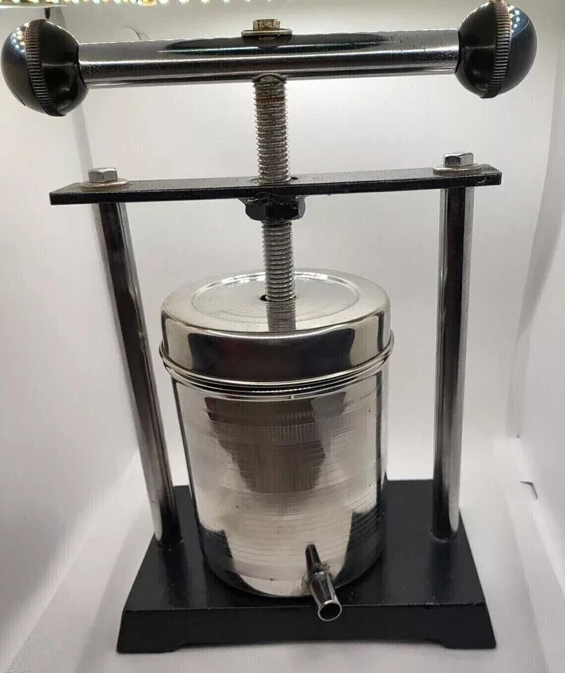 Tincture Press Heavy Duty Extra heavy duty for making tinctures, decoctions infusions etc. Cap. 1lt, stainless steel disc, with screw drive, stainless steel mesh as inner perforated vessel with stop cock. Tincture Press 1000ML. Extra heavy duty for making tinctures, decotious infusions etc. cap. 1 Lt, stainless steel disc, with screw drive, stainless steel mesh as inner perforated vessel . Tincture Press Heavy Duty, capacity 1 ltr. Made of cast iron base. Item Weight 4 kg 450 g Product Dimensions 34 x 29 x 18 cm; 4.45 Kilograms Item part number ARG-TPD-BN211 Item Height 18 Centimeters Item Width 29 Centimeters