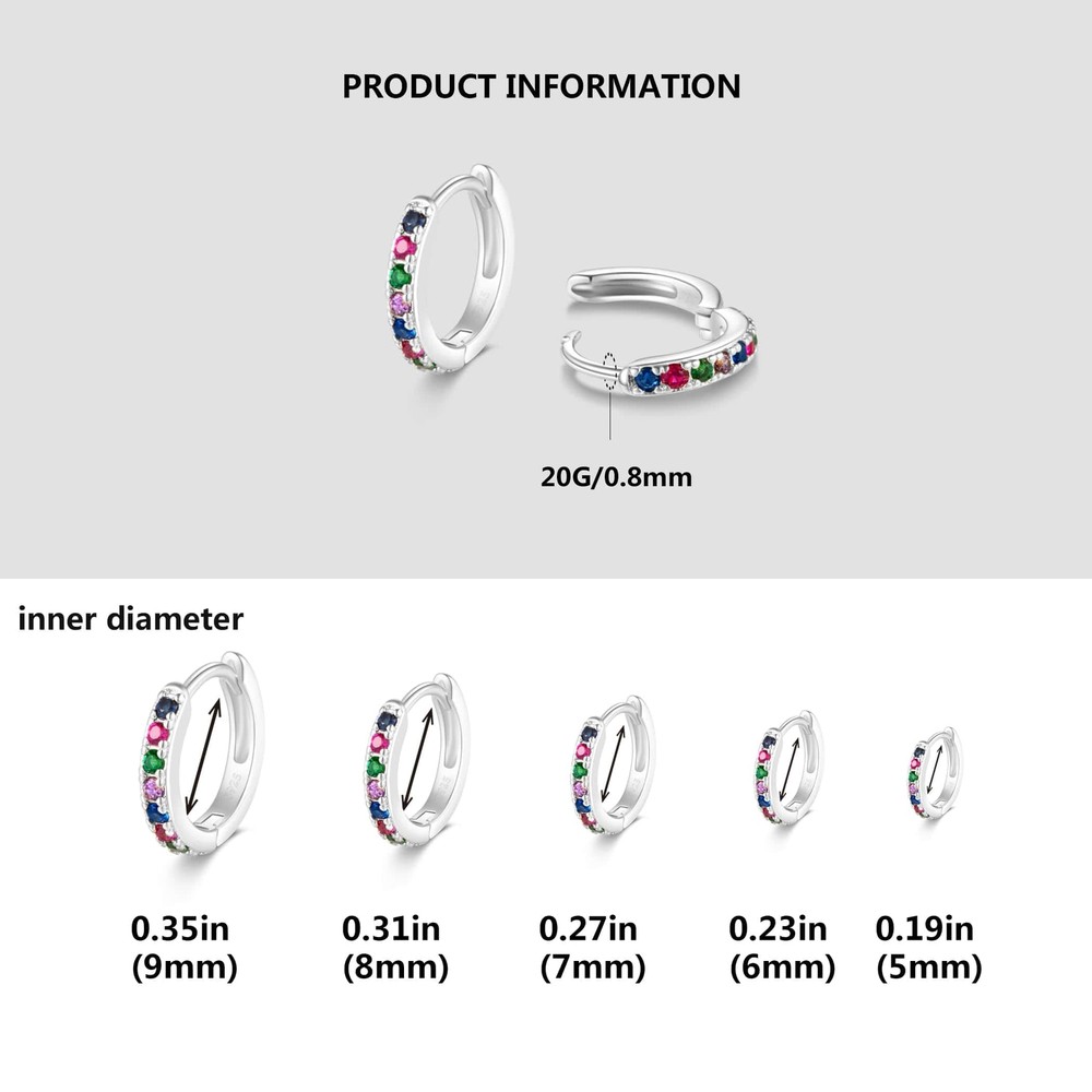 Dainty Tiny White Gold Huggie Hoop Earrings, 5 Pairs Mini Cubic Zirconia Hoops Earring Set for Cartilage Helix Lobe Piercings Small Hoop Earrings 5/6/7/8/9mm for Women Huggie hoop earrings: One package comes with 5 pairs different size mini silver hoop earrings include 5mm 6mm 7mm 8mm 9mm, meet your need for ear multiple piercing. Cartilage hoop earrings: In particular 5mm 6mm 7mm these tiny hoop earrings, are suitable for cartilage/helix/rook/tragus/daith/snug ear piercings. 7mm 8mm 9mm these small hoop earrings suitable for low lobe/2nd lobe/3rd lobe/conch/cartilage/helix ear piercings. Lightweight cute hoop earrings: It is made of very light brass base and plated with 14k gold and white gold. These cz hoop earrings are very light and cute. They can hardly be felt when worn. Cubic zirconia hoop earrings: These small hoop earring inlaid with cubic zirconia. It is sparkling and dazzling that makes you stand out in the crowd, and you will received a lot compliments. Hinged hoop earrings: Every customer is our valuable asset, and we put the customer's needs first. Please feel free to contact us when you have any problems, we will reply and solve within 24 hours. Shipping We offer FREE shipping on all orders! We ship within Three business days of payment, usually sooner. We use a selection of shipping services such as UPS, FedEx, USPS etc. We only ship to the lower 48 states, no APO/FPO addresses or PO Boxes allowed. Local pickups and combined shipping options are not provided at this time. Return You can return a product for up to 30 days from the date you purchased it. Any product you return must be in the same condition you received it and in the original packaging. Please keep the receipt. Payment We accept payment by any of the following methods: PayPal Please pay as soon as possible after winning an auction, as that will allow us to post your item to you sooner! Feedback Customer satisfaction is very important to us. If you have any problem with your order, please contact us and we will do our best to make you satisfied. Contact Us If you have any queries, please contact us via ebay. We usually respond within 24 hours on weekdays. Please visit our eBay store to check out other items for sale! Thank you for shopping at our store.