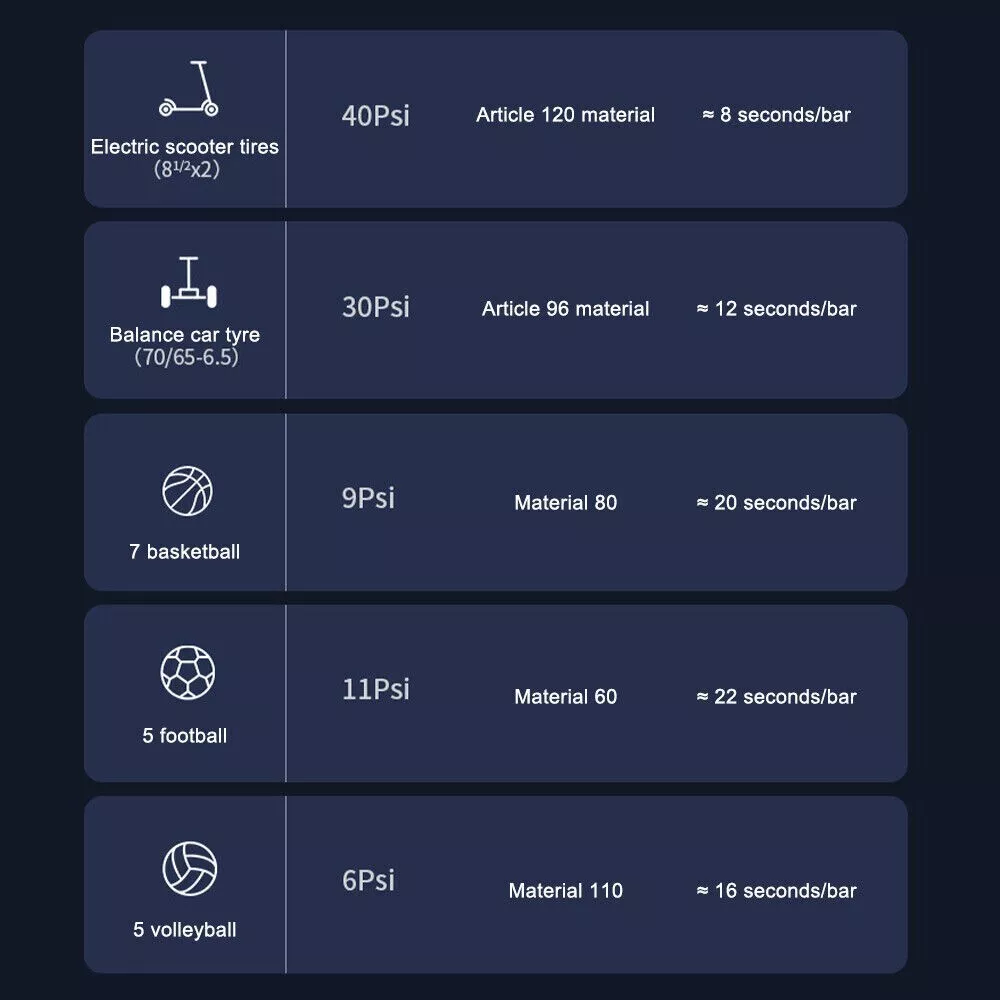 Please Note: This is NOT a rechargeable tire inflator and does NOT come with a USB cable. It must be powered via the Cigarette Outlet. Features : [FAST INFLATING SPEED and EASY TO USE] Simply plug this auto tire air compressor into the 12V power outlet and attach the hose to the tire you wish to inflate. You can just flip the switch, then shut it off once the tire pressure hits your desired number. [11.5 FEET-LONG RANGE] Besides, the 11.5 ft power cable is long enough to reach all the tires easily. A long cable eliminates needs to unplug it each time. [4 Extra Nozzles] Our tire pump has 4 extra nozzles which allow to inflate all types of tire, such as car, motor, ATV, or midsize SUV, sports equipment and inflatables adaptors included. Perfect for your inflatable boats, balls and other inflatables. [Compact Size Tire Inflator] Keeps pumps handy to fix a flat or inflate air mattresses when you travel away from home. Specification Package Content Power Source 12 Volt Digital Air Compressor(Tyre Inflator) 1 Power 120W Fuse 1 Material ABS Plastic & Heavy Duty Metal Additional Nozzles 3 Display Unit PSI User Manual 1 Pressure 150 PSI DC Power Cord (Cigarette Outlet ONLY) 1 Flow rate 35L / min Cable length 11.5ft (3.5m) Noise level <50db Continuous work time: 10 min Shipping Method: -Paypal is the only payment method accepted through our eBay store We provide Prioity Shipping service, which takes 2-3 business day to be delivered, for additional fee. -Usually the orders will be delivered in 4-10 business days Contact us: Please contact via eBay message. And your message will be replied within 1 business days. For any queries, please feel free to contact us, we will get back to you as soon as possible. If you have any problem of the item, please feel free to let us know before leaving your feedback. We will try our best to solve your problem.