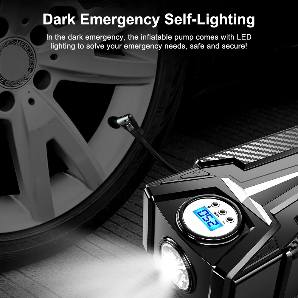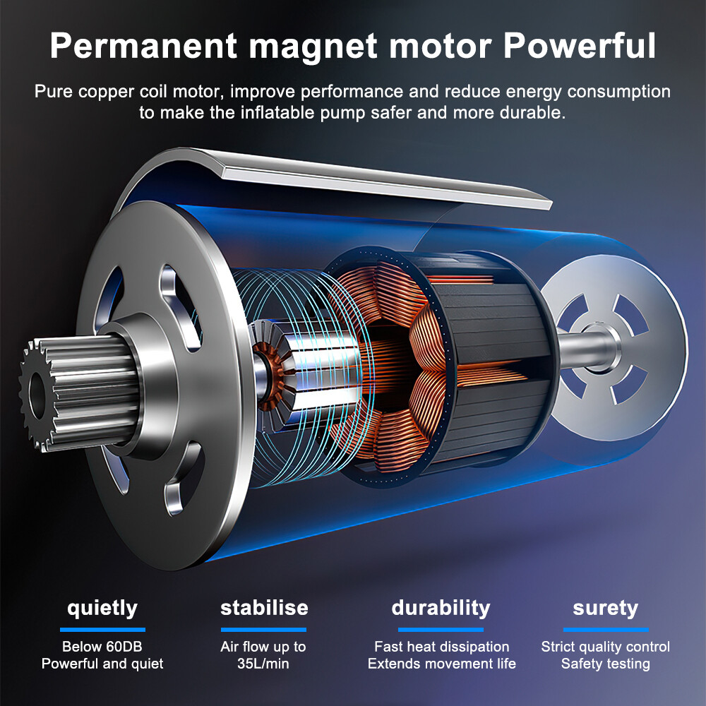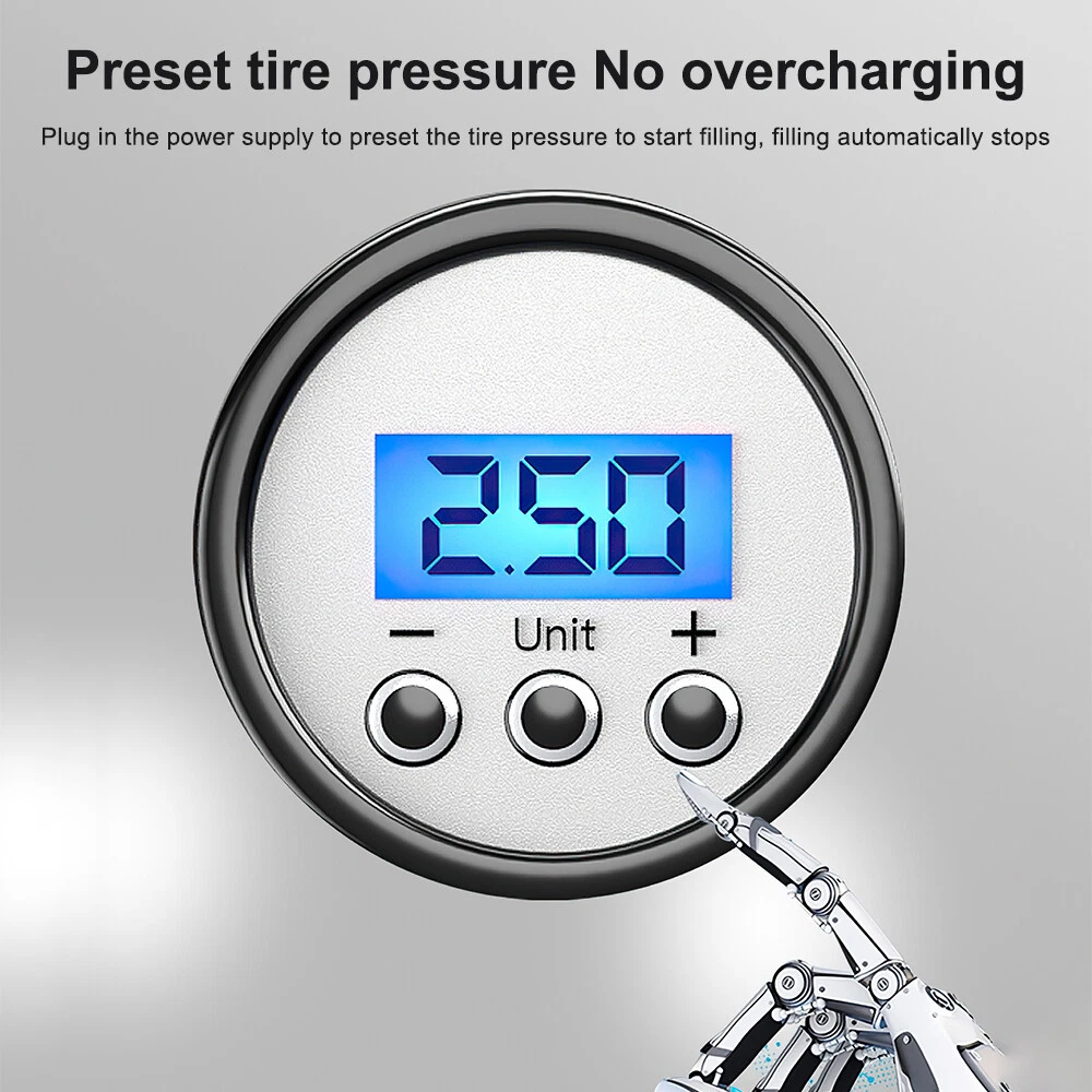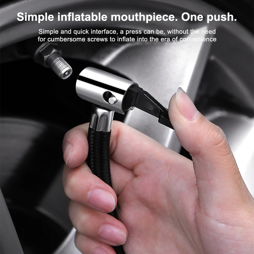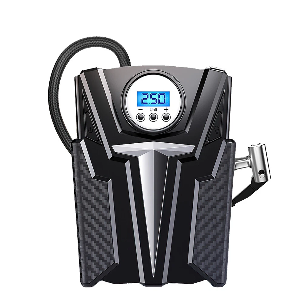 Specification: Material: ABS Operating voltage: 12V Rated input: 12V 2A Cylinder diameter: 22mm Rated power: 60W Pressure range: 3-150PSI Accuracy: ±1.5psi Air volume: 25L/min Continuous working time: 15min Time: Inflation time: 8-9min Power cord: 3m Input interface: DV 12V Usage time: 15min Hose length: 520mm±10mm Operating temperature: -20℃~60℃ Size: 19*12.5*7.5cm Package Included: 1 x Inflator pump 3 x Inflator nozzle 1 x Cigarette lighter 1 x Storage bag 1 x User manual