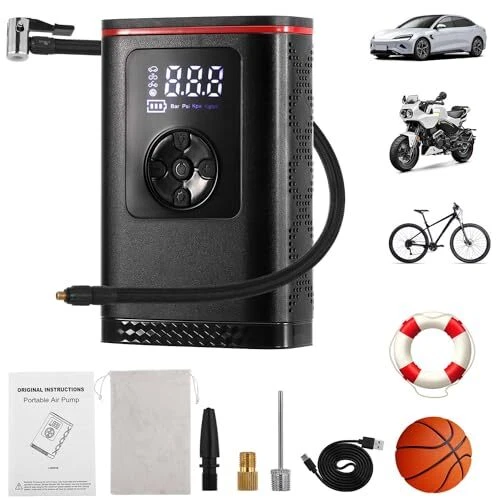 Return Policy Fast Delivery Trusted seller Tire Inflator Portable Air Compressor- 150 PSI Cordless Tire Pump with 6000mAh Battery/Auto Stop/Emergency LED Light/Power Bank Function, for Car Bike Motor Ball Product Description ?【LCD DIGITAL DISPLAY & AUTO SHUTOFF】The Digital Tire Inflator has a large LCD digital display screen with 4 pressure measurement units- PSI, KPA, BAR, KG/CM². Real-time reporting of accurate data to know tire pressure at a glance! It also provides you with rest-assured using experience based on the auto shut off function at the desired level. T is no need to worry about over inflating, smart portable inflator for tires got your back! ⚽【QUICK AND EFFICIENT INFLATING】Portable air compressor for car tires is a great solution for emergencies on the way. It provides 15L/ MIN of airflow. Perfect for inflating cars, motorcycles, bicycles, balls, swim rings, and other inflatable items.【Note: Not to inflate the tires of trucks, buses, vans, etc.】 ?【BRIGHT LED LIGHT】We also considered the use at darkness! The LED lights provide illumination in low-light conditions, making it easier to inflate tires or other objects during nighttime or in dimly lit environments. ⛽【POWER BANK】6000Cordless tire pump not only charges the car port, but can also be used as a portable battery to charge your cell phone or other electronic devices, ensuring that you are always connected even when you are on the go. ?【PORTABLE TIRE INFLATOR】Portable air pump features a compact, cordless design that allows you to easily take it with you anyw you go. Its compact size fits easily into your car tool box, bike rack, backpack and pocket. Inflate anytime, anyw! Shipping Returns Payment Shipping Shipping is FREE to all addresses other than APO/PO boxes in the lower 48 states. All our stock ships from US-based warehouses. Shipped via USPS or UPS (depending on location and package weight) Unless stated otherwise, all orders will ship within 24-72 hours of your payment being processed. Check our feedback to see the great reviews of FAST shipping we offer. Returns Seller does not accept returns Payment We currently accept payment via eBay managed payments only. Once payment is cleared, we will dispatch your shipment within 1-3 business days. Please refer to the "Shipping" tab for more information regarding shipping speed to your destination.