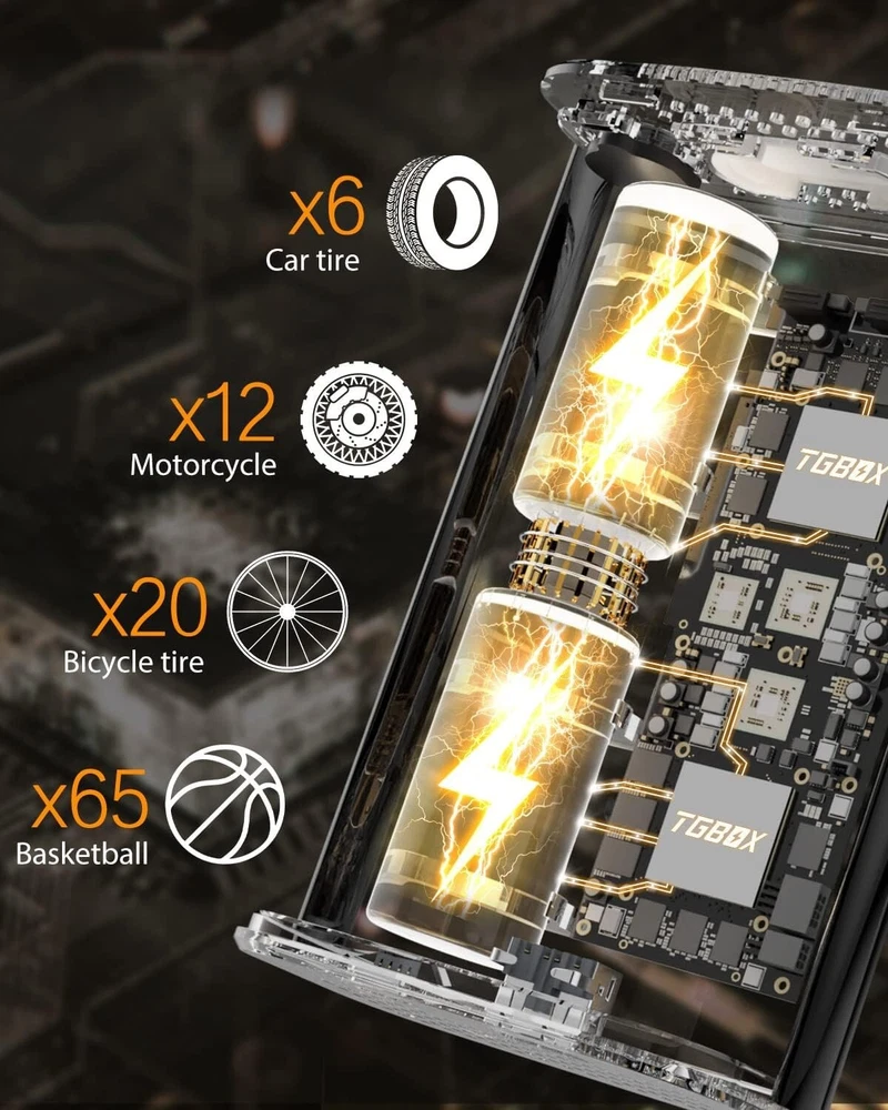 -Brand New - Never Used - Questions: Feel free to ask any Questions - BOX: Never Opened - DESCRIPTION: 【Powerful Output & Faster Inflation】 TGBOX tire inflator powerful motor can provide 150PSI pressure, and 32L/min air flow. 25-35 tires only need 1min, 0-36PSI only need 8 minutes to fully inflate. This bike pump for car is suitable for bicycles, motorcycles, small vehicles, various balls (balloons, basketballs, soccer balls, etc.) 【Tire Pressure Detection & Intelligent Control】 Tire pump has a large LCD digital display screen with 3 pressure measurement units- PSI, KPA, BAR. Real-time reporting of accurate data to know tire pressure at a glance! The bike pump for car also provides you with rest-assured using experience based on the auto shut off function at the desired level. There is no need to worry about over inflating! 【Emergency Charger & Flashlight】 TGBOX car tire inflator can be used as a rechargeable battery to charge your cell phone. The bike pump can be used as a flashlight at night, small and easy to use, put it in your pocket, trunk, etc. 【Compact and Portable】 The portable air compressor Size is 3.1*1.9*5.1 inches, Weight is 1 lb, which is easy to store in a frame-mounted bottle holder, bike saddle bag, and seat packs. It will be a good helper for you on the cycling road! 【Package List】 Tire inflator portable air compressor ✖1, flexbile hose ✖1, Presta/Schrader/Dunlop Valve Adapter ✖1, swimming ring nozzle ✖1, ball needle ✖1, storage bag ✖1, USB charging cable ✖1, user namual ✖1 - OFFERS: Reasonable offers are considered, LOWBALLERS, Best price and Lowest askers will be ignored - all sales final/no refunds/ no exchanges/ no returns - Disclaimer: I do not own the brand's trademarks, logos, pictures, or products posted. I do not intend to infringe on copyright. I find such content available on the internet. Contents are considered fair use. - Tire Inflator Portable Air Compressor, 150 PSI Fast Inflation & Cordless, Air Pump for Car Tires with Rechargeable Battery, Bike Pump for Car, Bicycle, Motorcycles, Ball