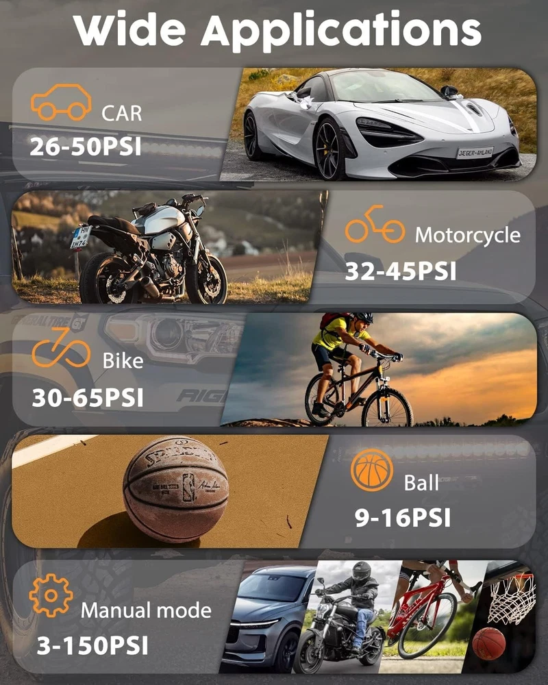 Tire Inflator Portable Air Compressor, 150 PSI Fast Inflation & Cordless