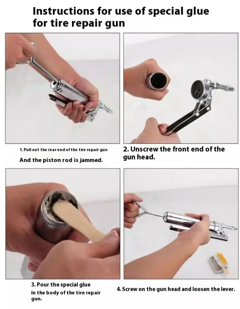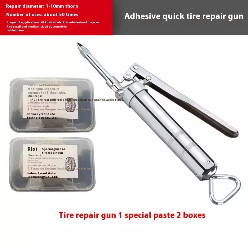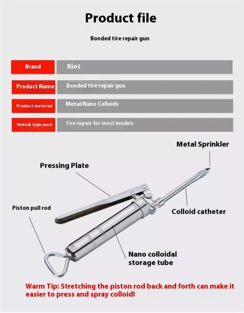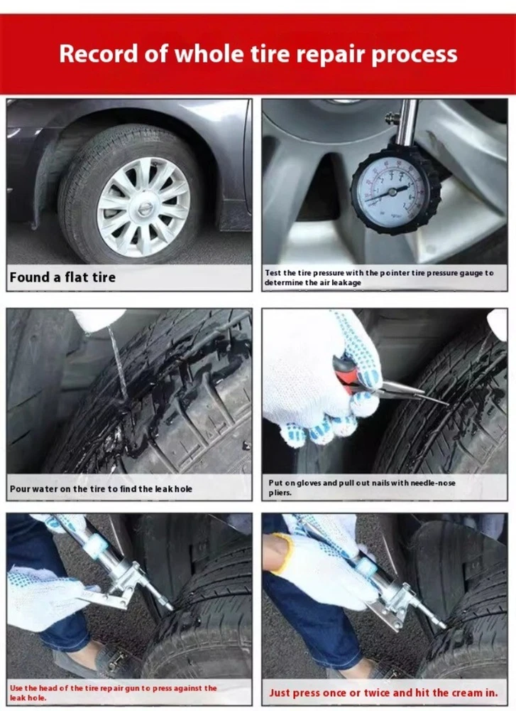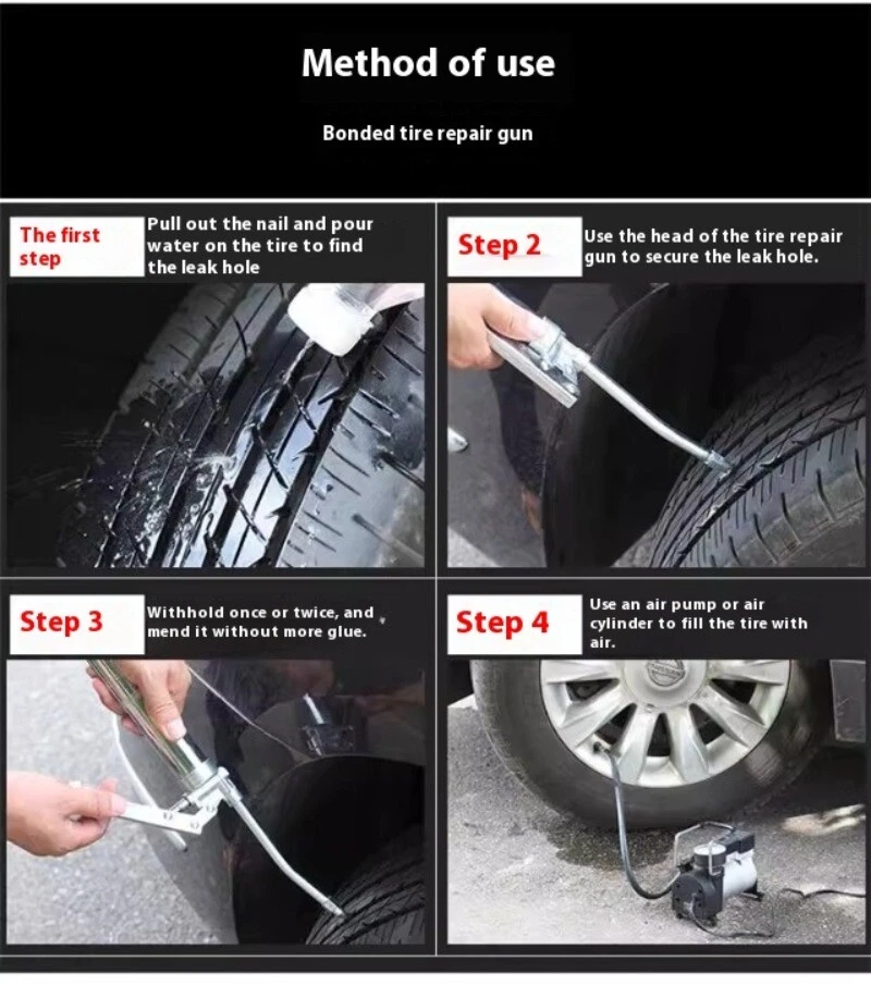Features: 1. Applicable to various tire models: whether it is a car or a motorcycle, as long as the vacuum tire can be repaired 2. Fast and simple: After using special tire rubber, you don't need to wait for a long time, you can directly inflate the device within 3 to 5 minutes. 3. High fault tolerance: waterproof and high temperature, no matter you are a mountain swamp or a tidal swamp, it is not easy to be drained. 4. High-quality materials: The tire repair agent is made of stainless steel, which is waterproof and high temperature resistant, does not rust, and is durable. 5. Lightweight transportation: Whether you are driving in the city or driving in the city, you need to bring our tire repair tools to save a lot of car repair costs. Product parameters: Material: stainless steel/high-grade quick connect rubber Size: about 30 * 5.5cm / 11.81 * 2.16 inches 100g (tire rubber) product Description:1. This product is not tire rubber, will not dry out, will not harden, it is not a traditional glue product.2. This product is suitable for 0-10mm puncture, that is, it cannot compensate for the scratch of the long strip.3. When using this product, it is recommended to align the tire pressure with a puncture less than 1KG/CM3.4. Inflate immediately after fighting, no need to wait included: 1 * Repair tires